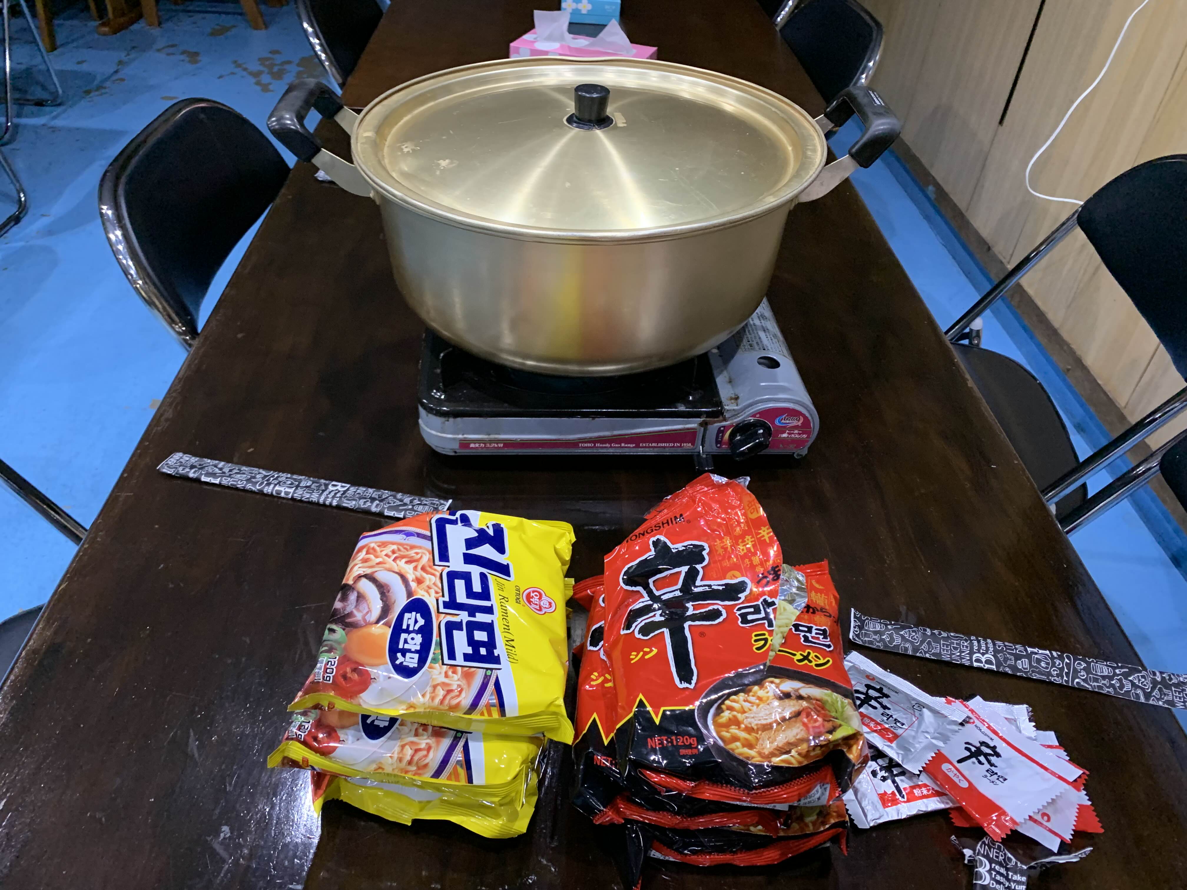 신라면3개를 얻었는데 식구가 7명이라 못먹고 유효기간이 4개월이 흘렀다. 다이소에서 진라면을 팔아 3개 구입해서 교회 식당에서 해 먹음. 너무 맛있어. 연발하는 딸들.
