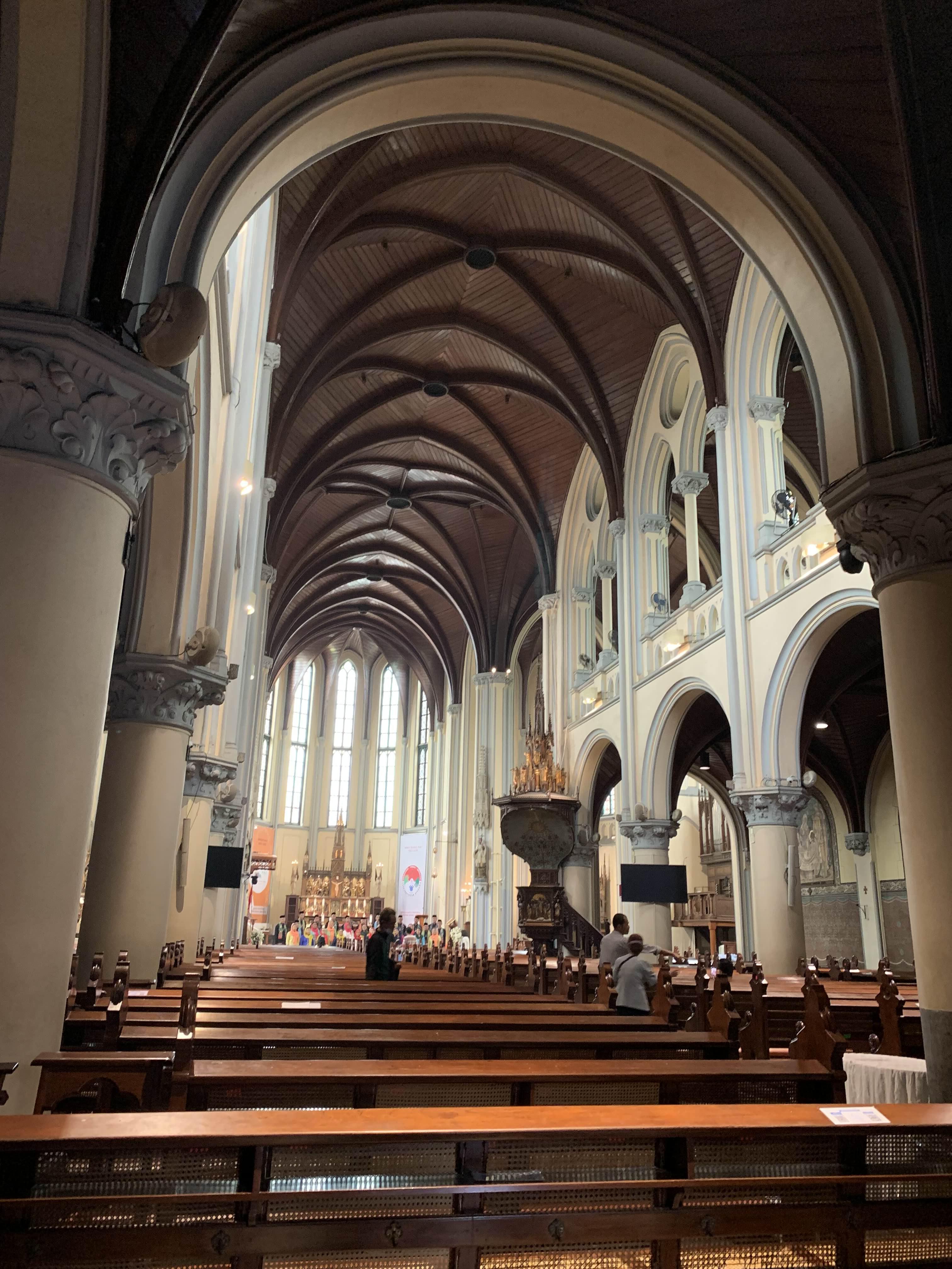 카톨릭성당 내부. 앞쪽에 찬양연습중이고 통로를 막아 놓아서 들어갈 수 없었다.