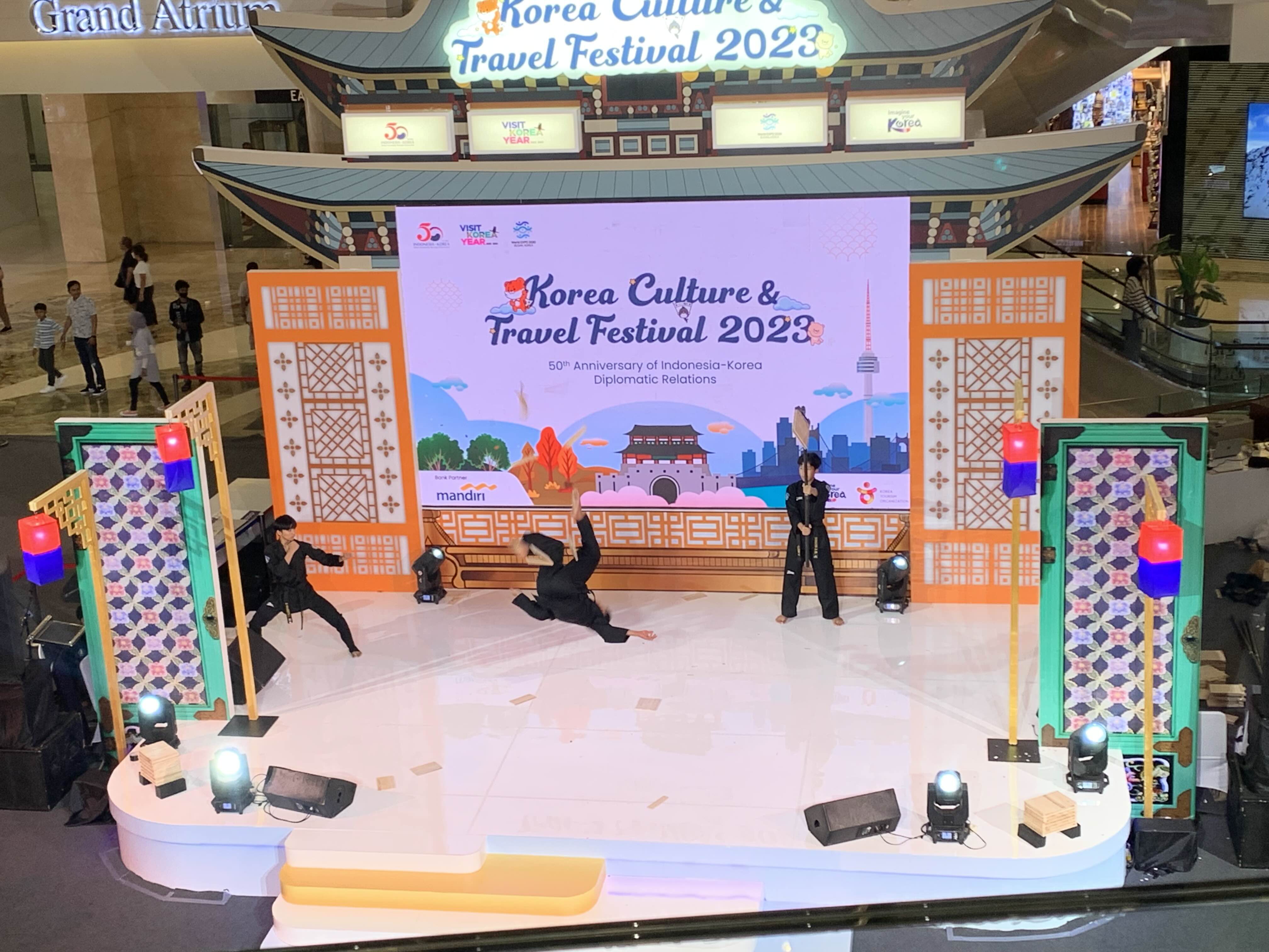 몰의 한 공간에서 인도네시아 청년들의 태권도 시범