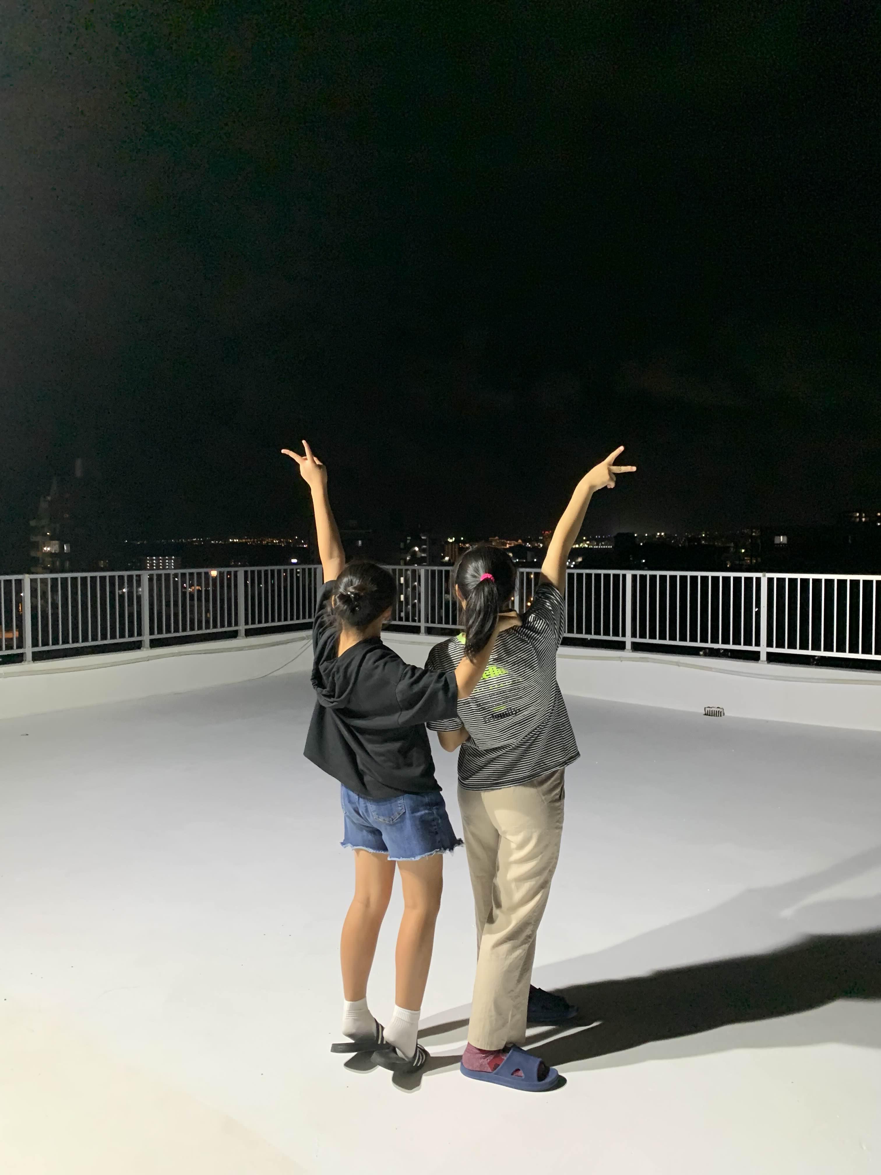 옥상에 페인트를 칠하고 전등을 두개 설치해서 야간에도 다용도로 이용할 수 있게 되었어요.