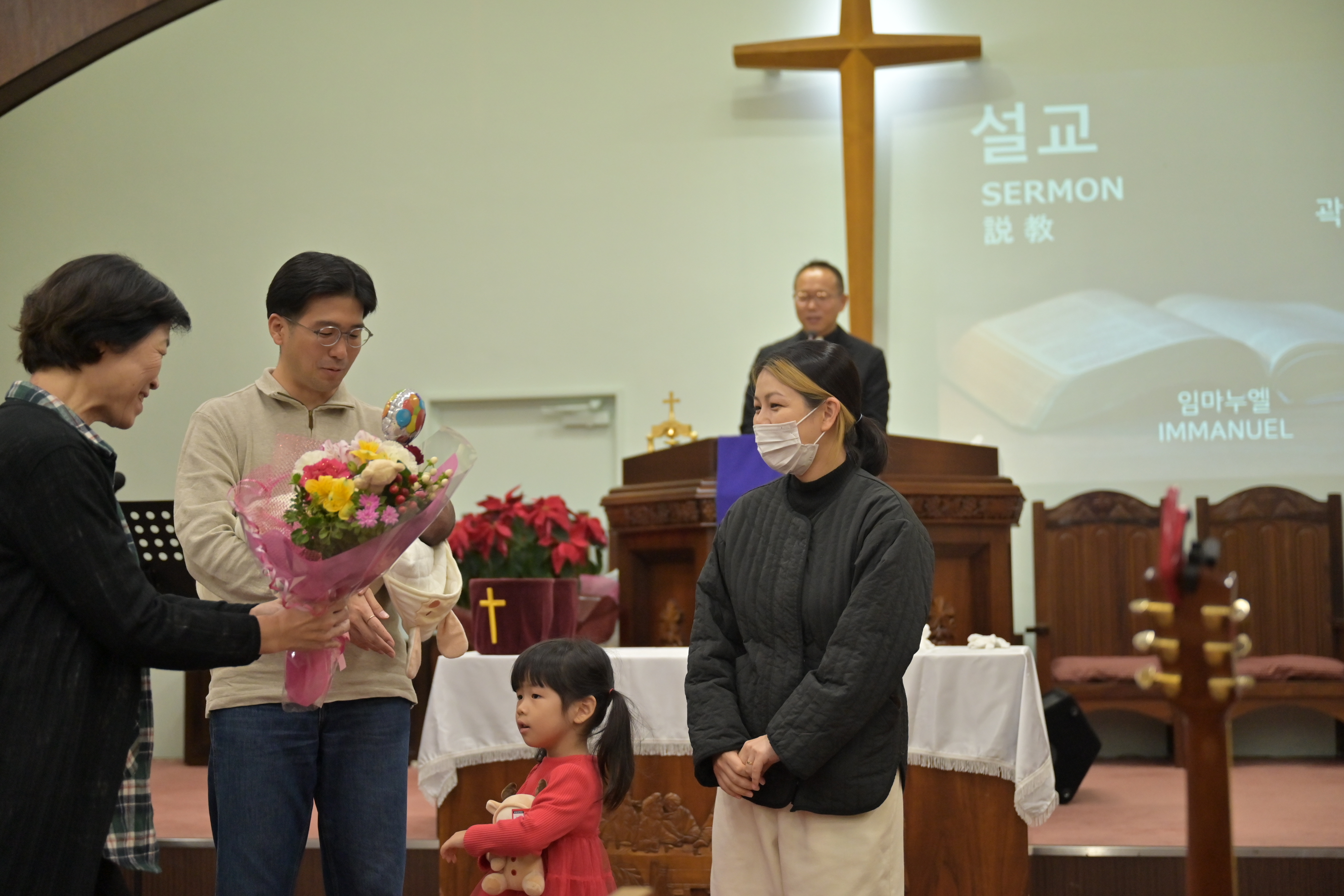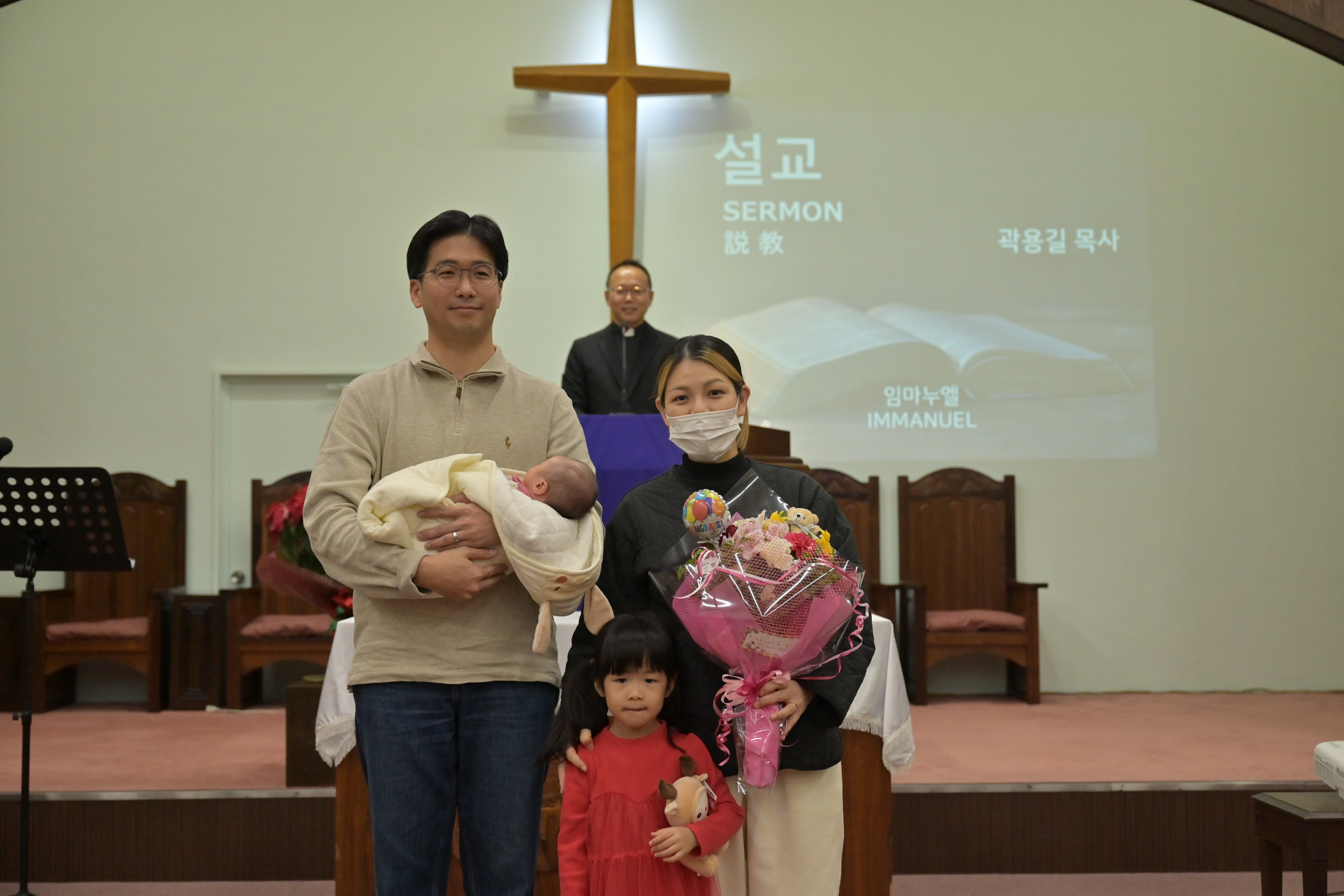 3주밖에 안된 아가. 세례를 집례할 때 찬물이 이마에 흘렀을 텐데 움찔하는 것 외에 얌전히 세례를 받았다. 어찌나 사랑스러운지.