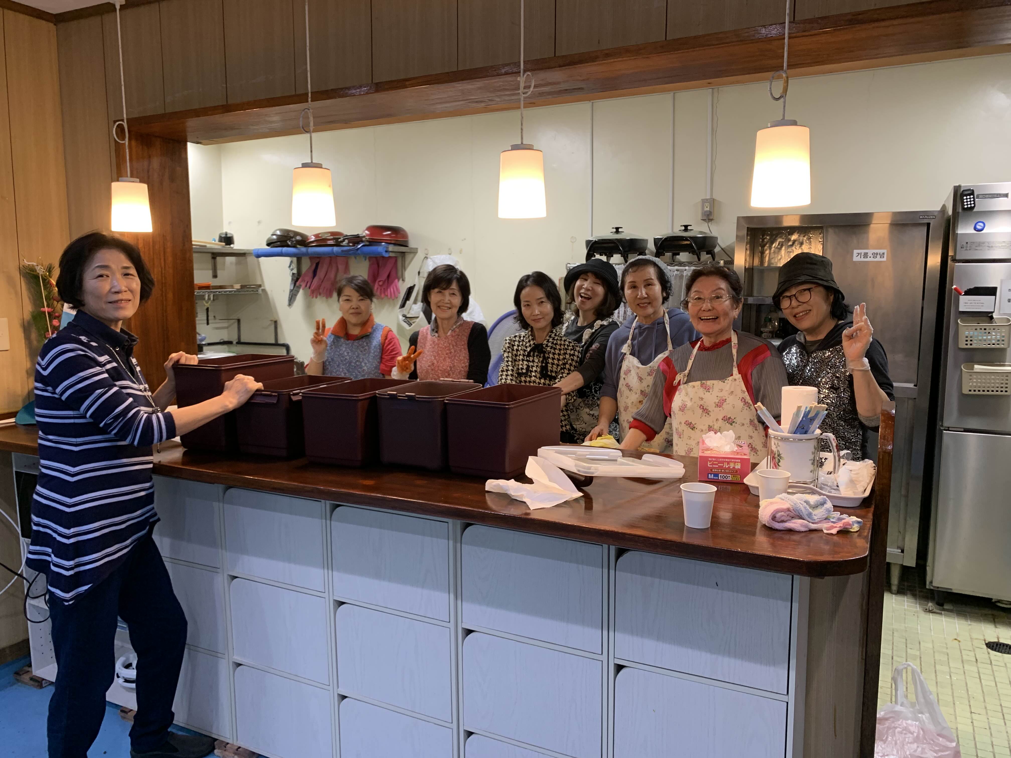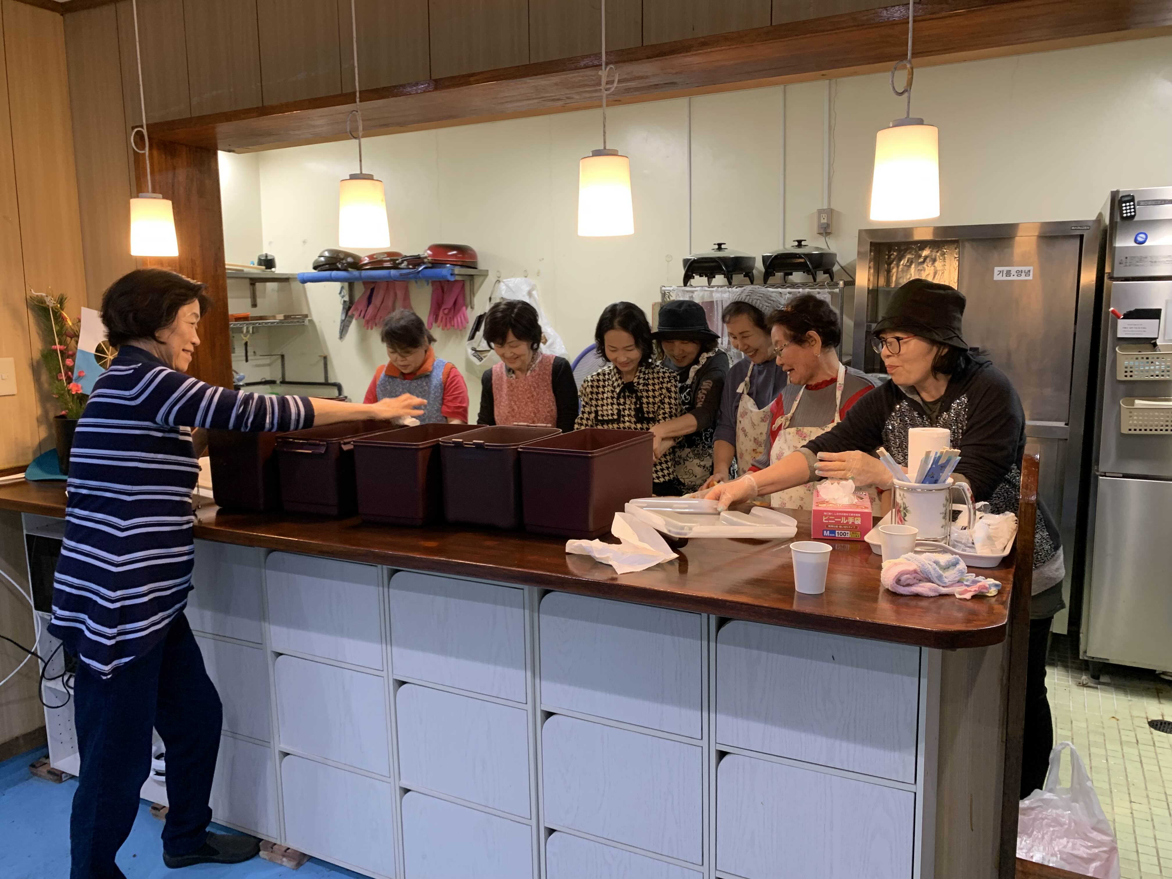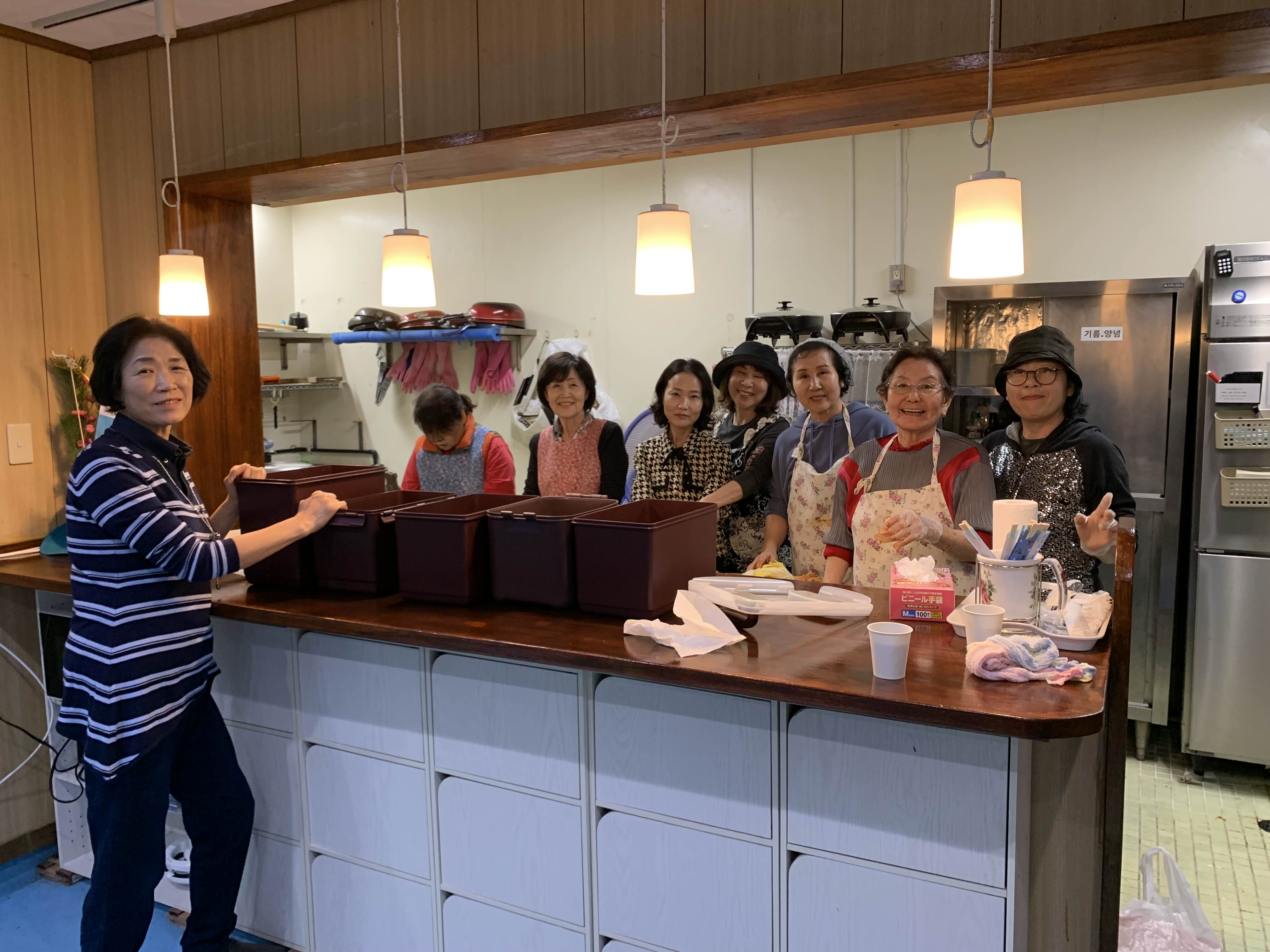 행복하게 김치를 만드시는 권사님 집사님들.