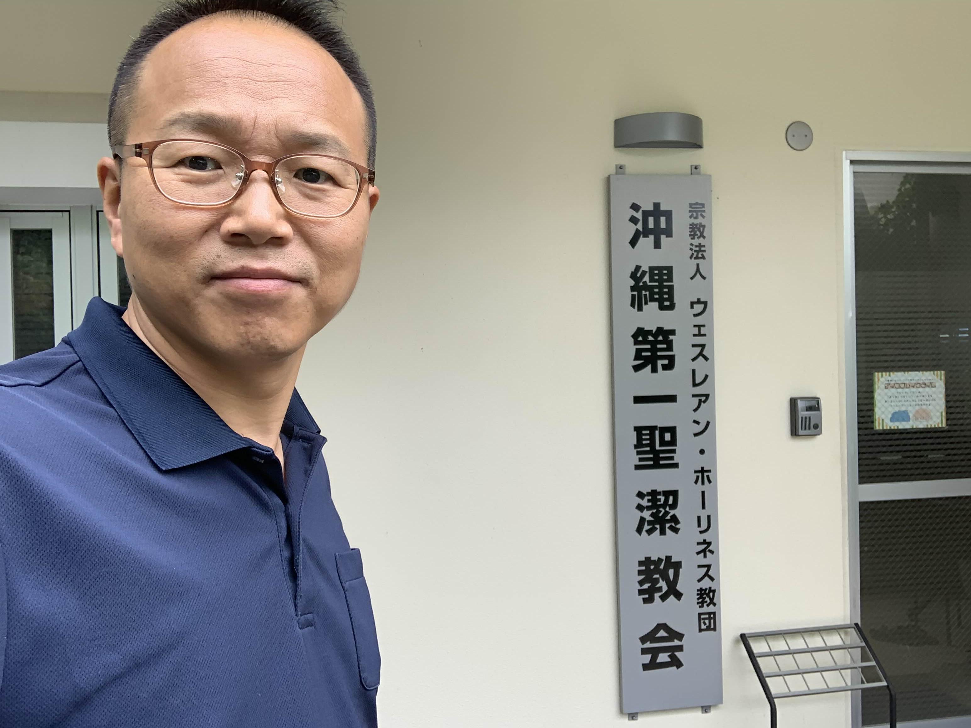 모임장소. 오키나와제일성결교회 사쿠마목사님과 김숙경목사님 부부 목사님이 시무