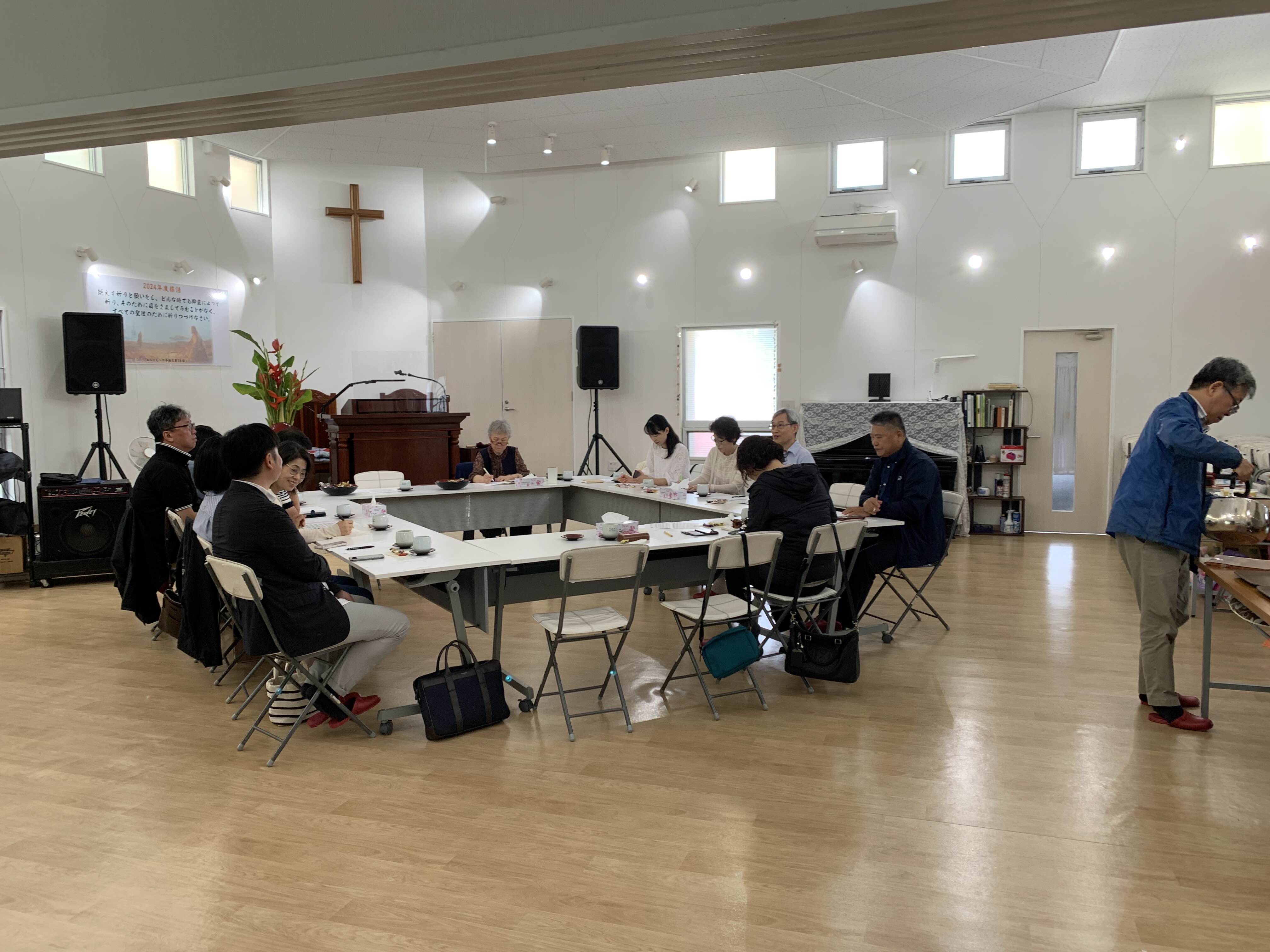 모임장소. 오키나와제일성결교회 사쿠마목사님과 김숙경목사님 부부 목사님이 시무