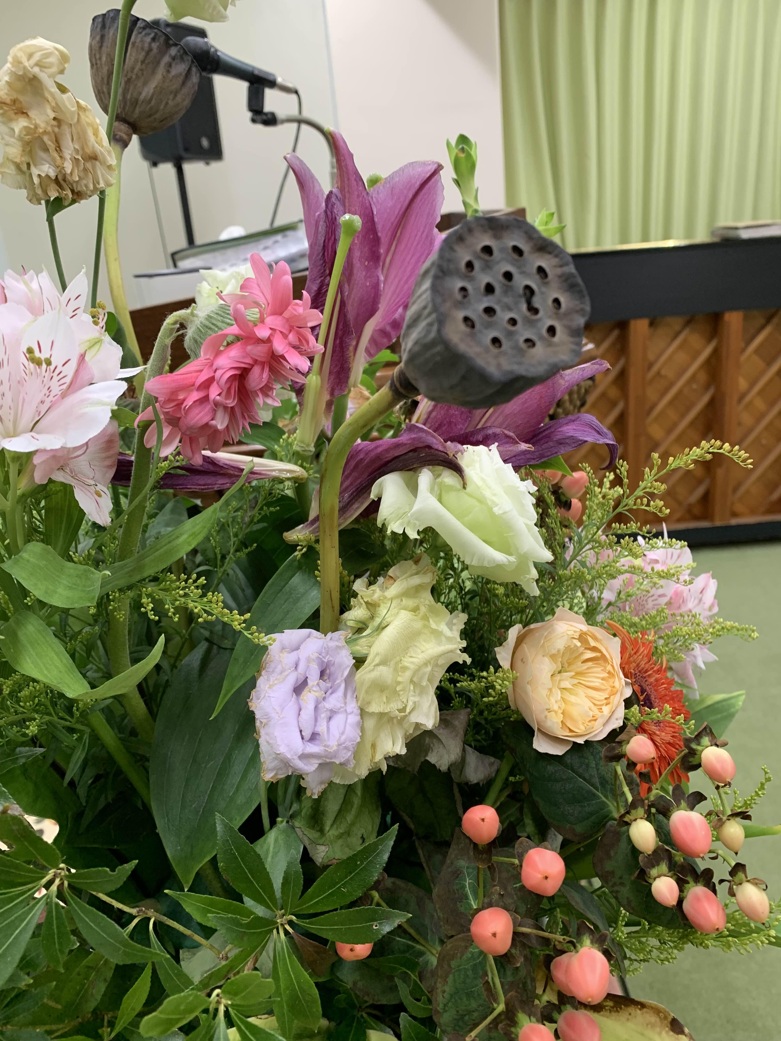 수요예배후에 주일강대상에 올라왔던 꽃을 무심하게 보게 되었다. 물뿌리개 일명 조로인줄 알았다. 신기하네. 하나님의 창조의 섭리는 늘 기대 이상이다.