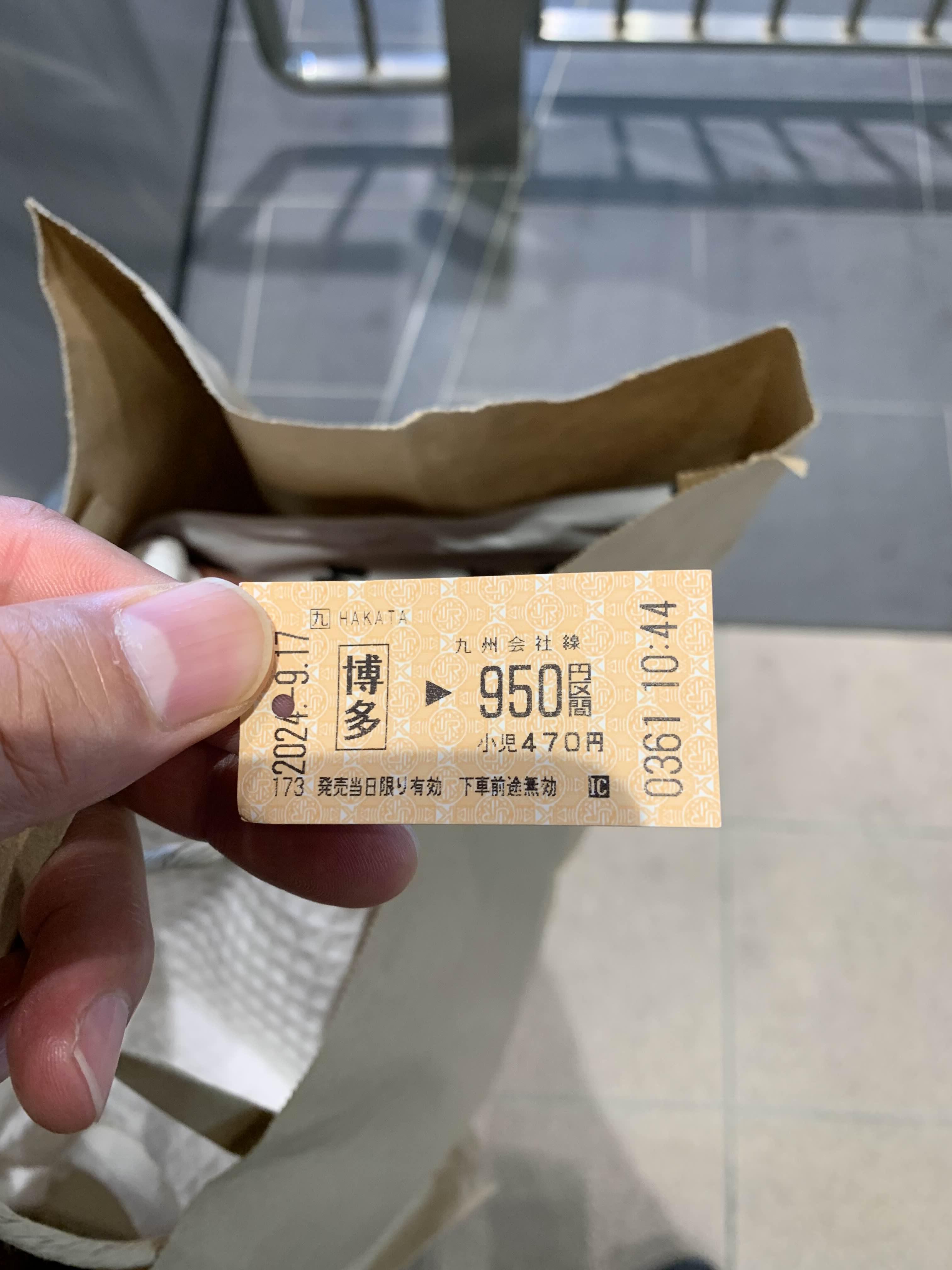 후쿠오카 하카타역에서 기타큐슈 오리오역까지 편도티켓