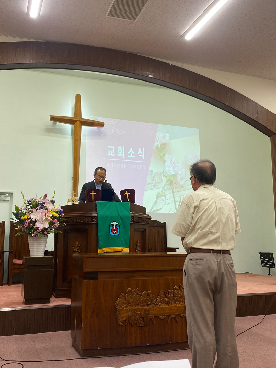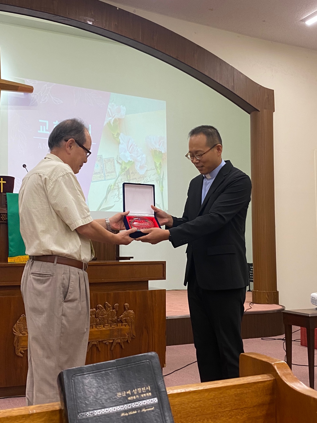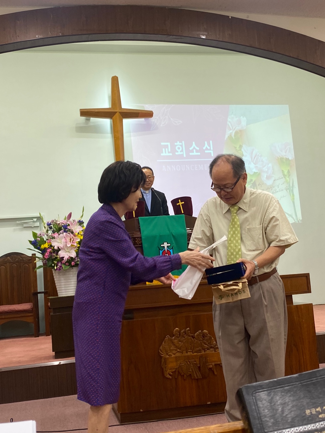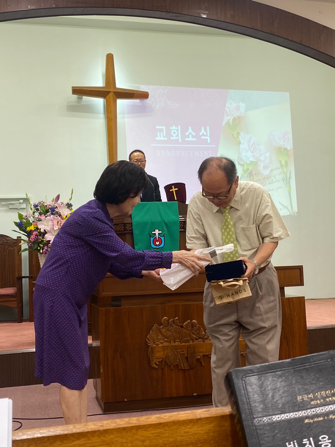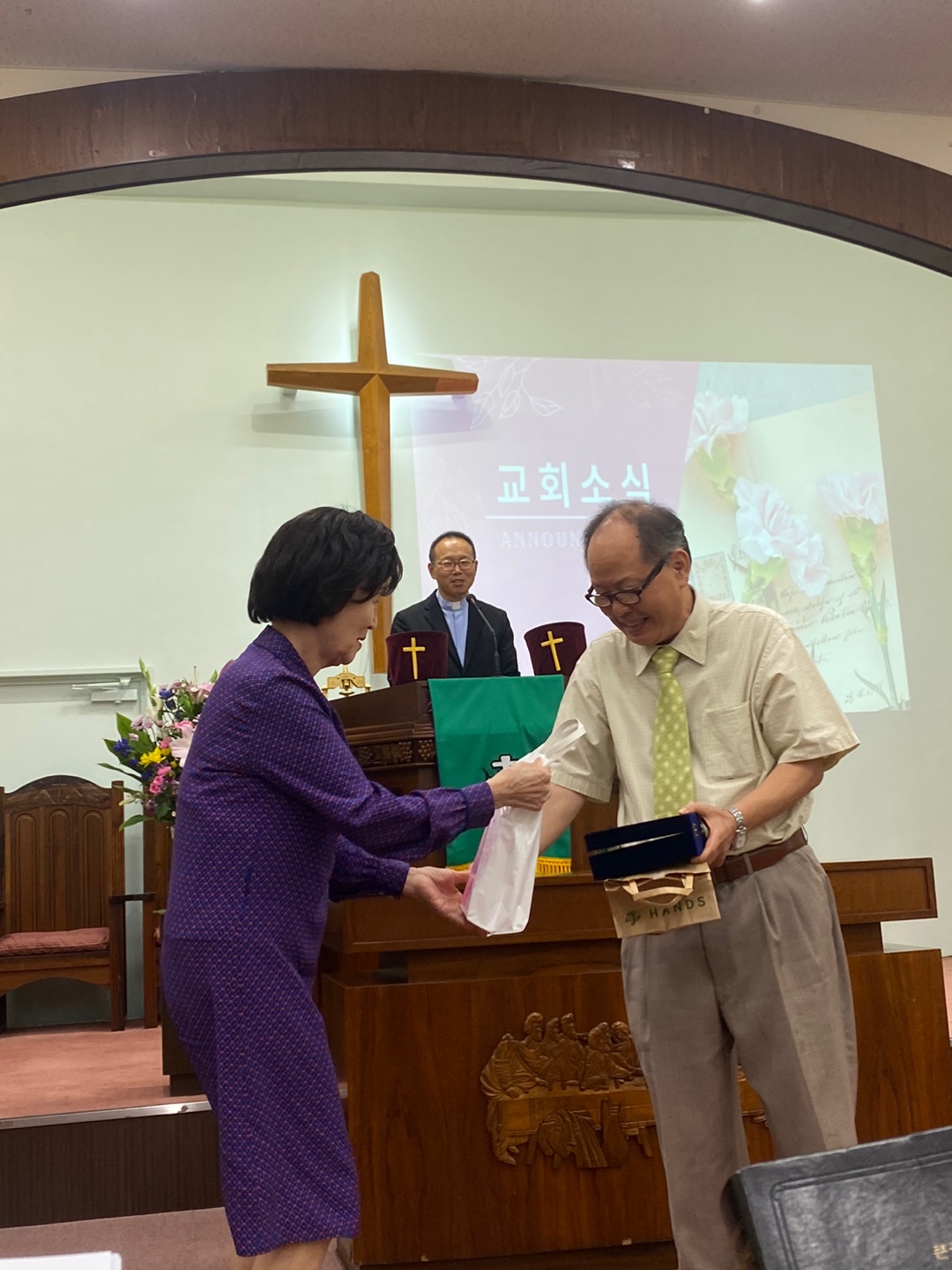 올해 만 70세가 되어 은퇴식을 해야 하지만 은퇴식을 하지 않고 총회 헌법상으로는 은퇴장로지만 오키나와교회에서는 건강이 허락하는 한 계속 섬기기로 제직회에서 결의했다. 그래서 생신을 맞은 이날 지금까지의 헌신을 기리며 감사하기로 하려 공로패를 드렸다. 참고로 일본교회들은 사람이 없어 은퇴제도가 없어진 곳이 대부분이다.