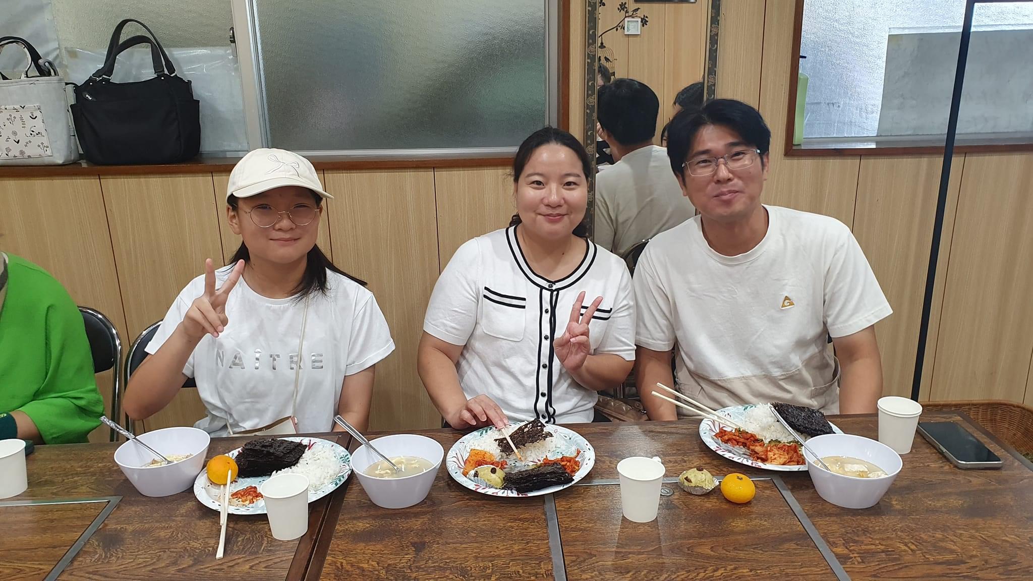 일정이 있어서 출발해야 하는데 뒤에 차가 3대가 막고 있어서 식사를 하고 가신 방문객.