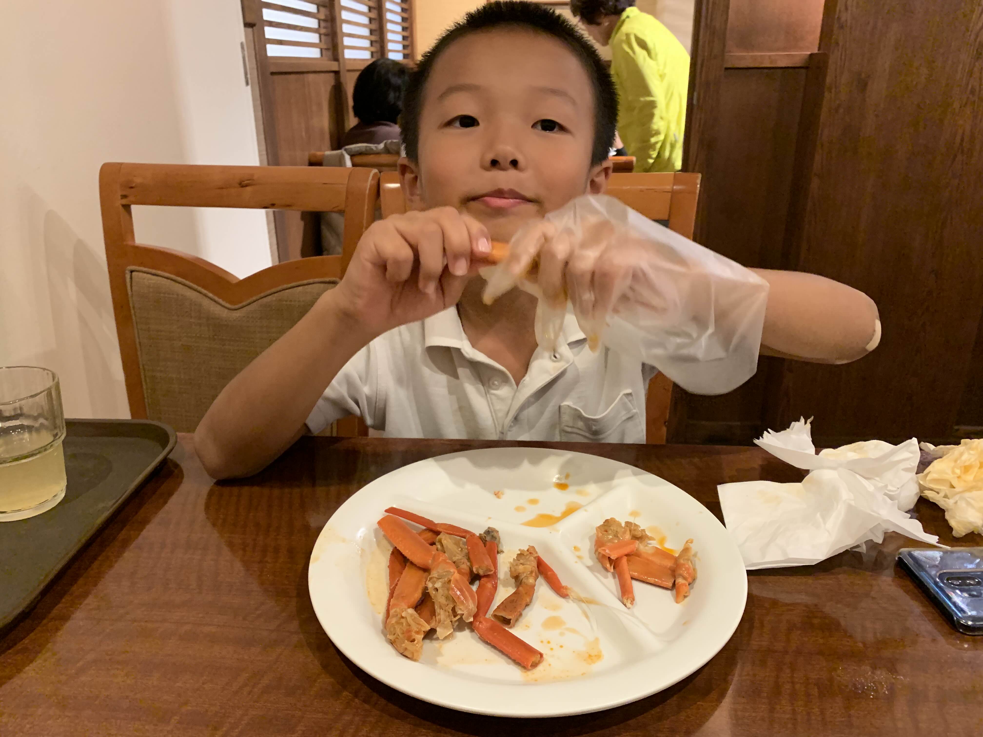 니가 게 맛을 알아? 혼자서 맛있다고 젖가락같이 얇은 게 다리를 두 접시째 먹고 있다. 살은 없고 실 같은 것만 있는 것 같은데 게 다리속에 있는 국물을 빨아먹으면서 맛있다고 먹어보라고 한다. 나중에 옷과 손에 게 비릿내가 엄청 났다.