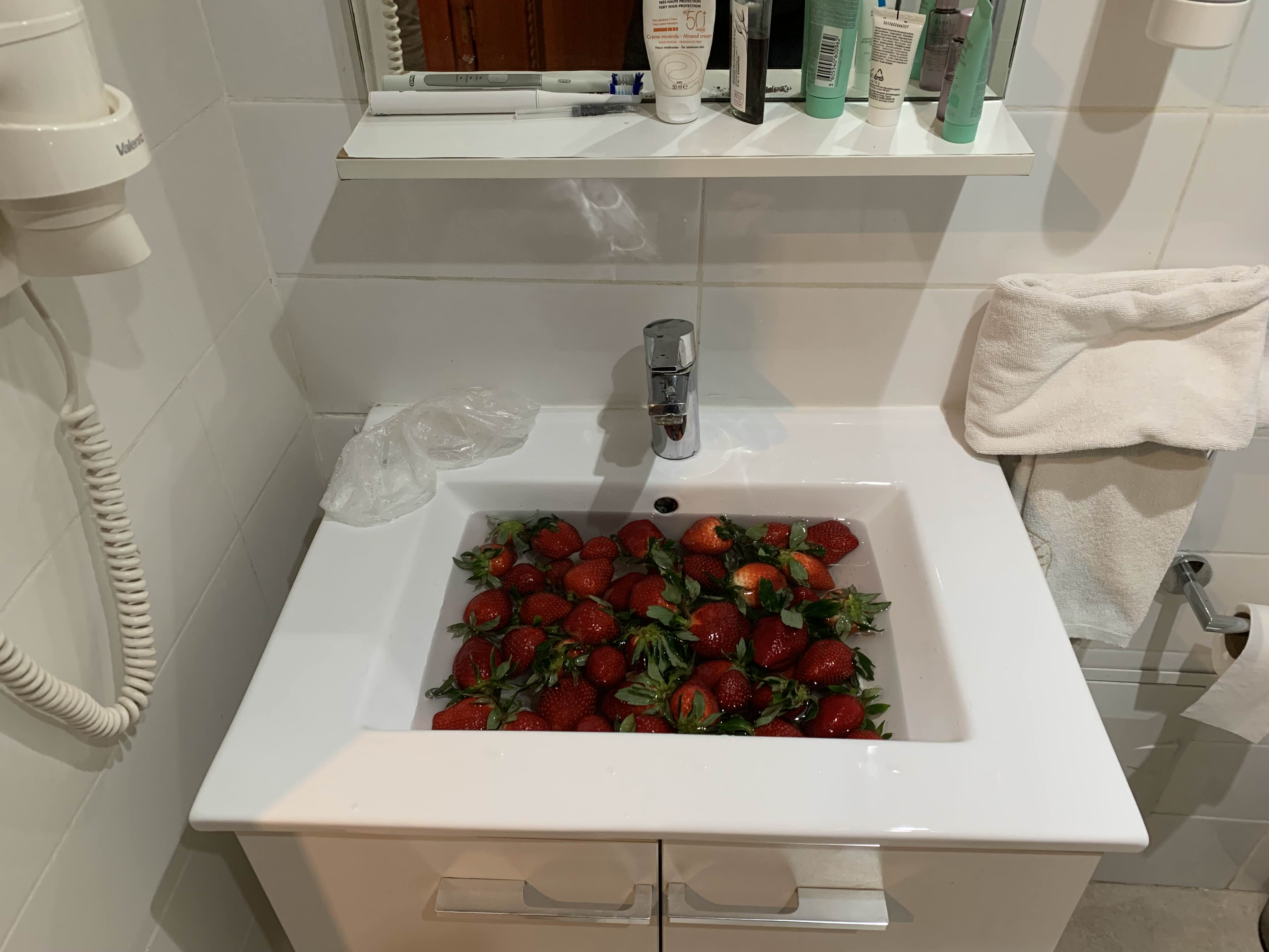 마라케시 시내 리어카에서 구입한 딸기. 400엔 어치.