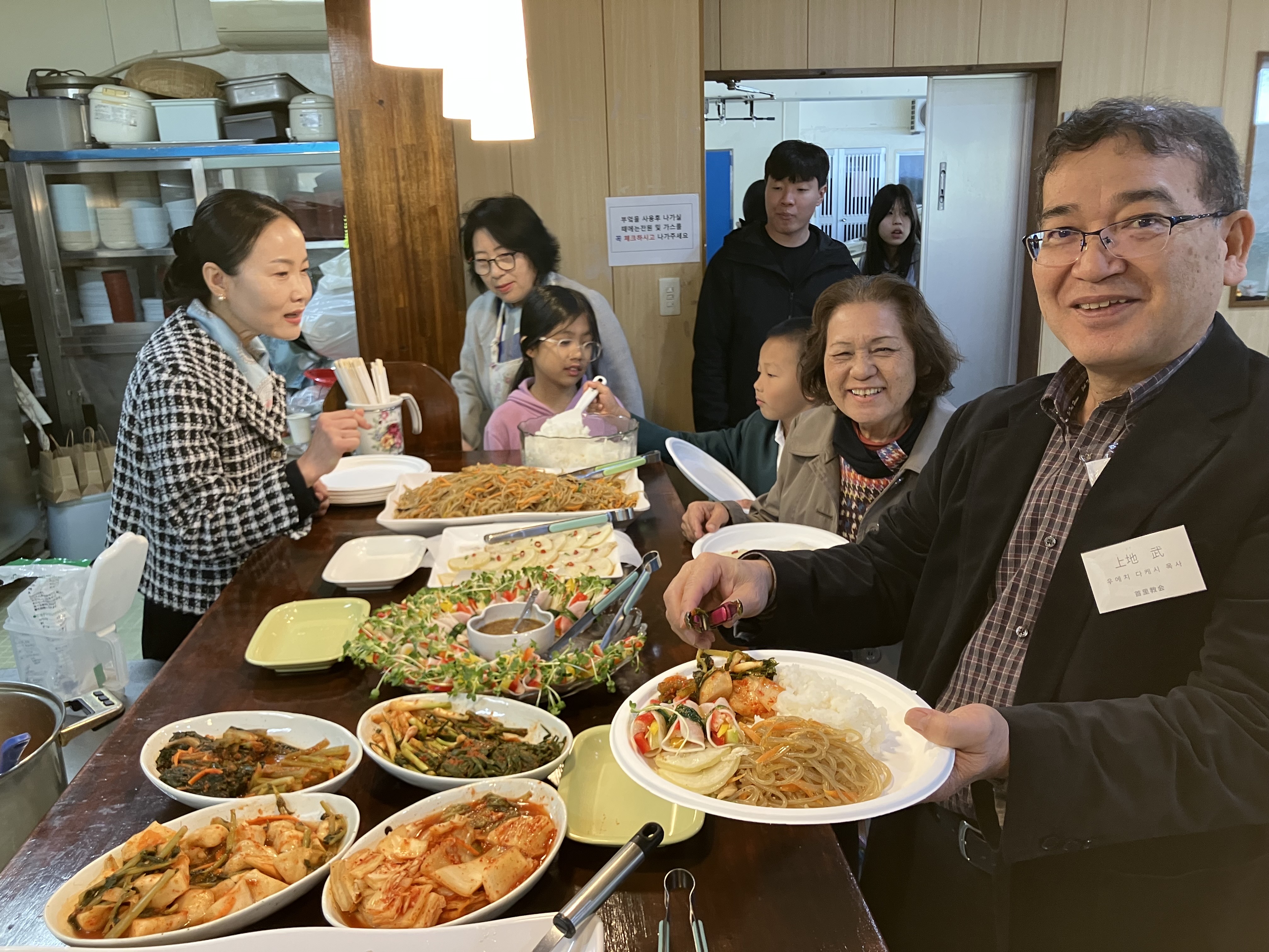 식사후에 일본기독교단 성도들과 한마디씩 나눔