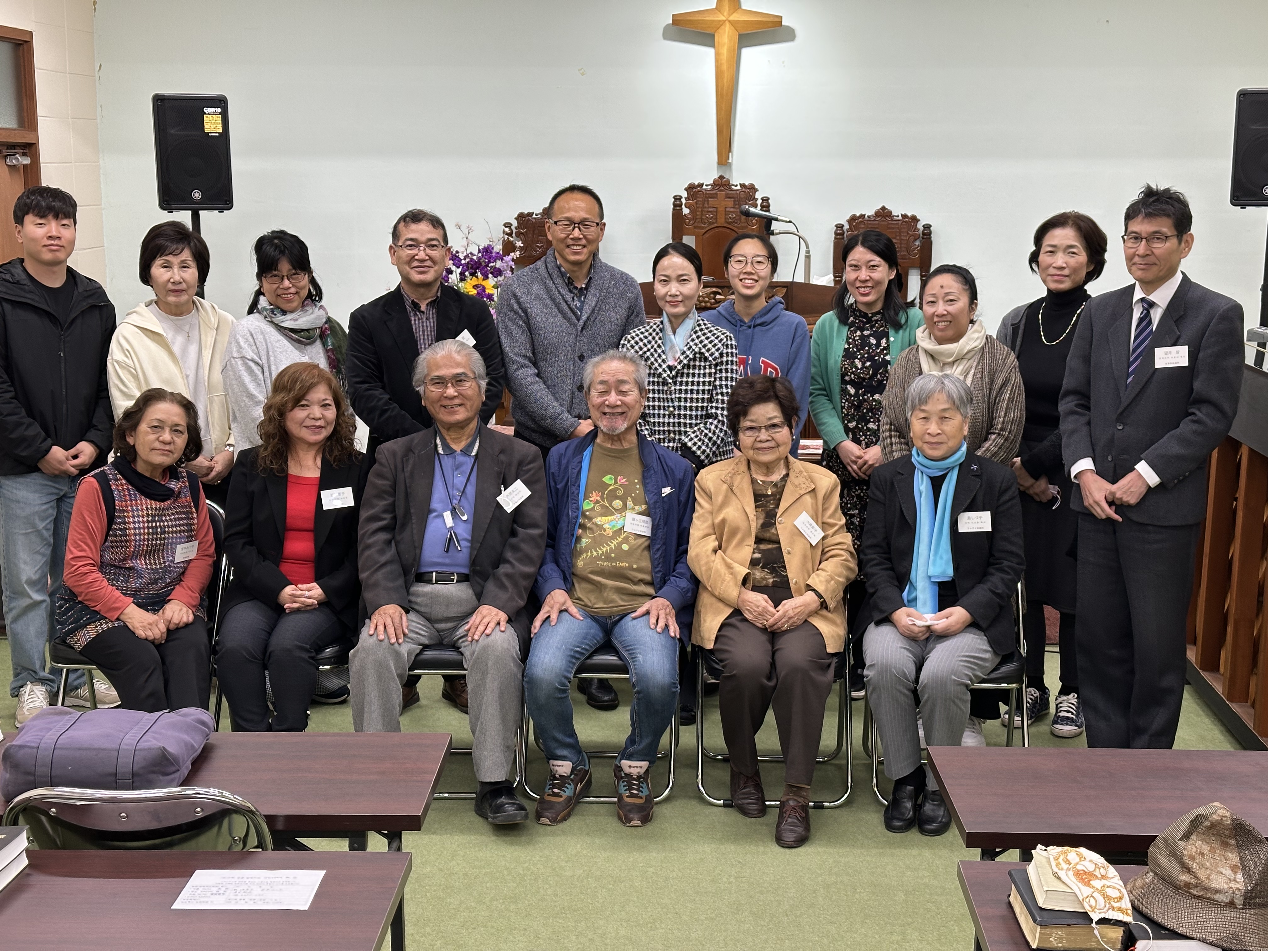 명찰을 붙이신 분들이 일본기독교단 여러 교회에서 오신 목사님들과 성도님들이십니다. 오른쪽 사토시 목사님이 주관해주셨습니다.