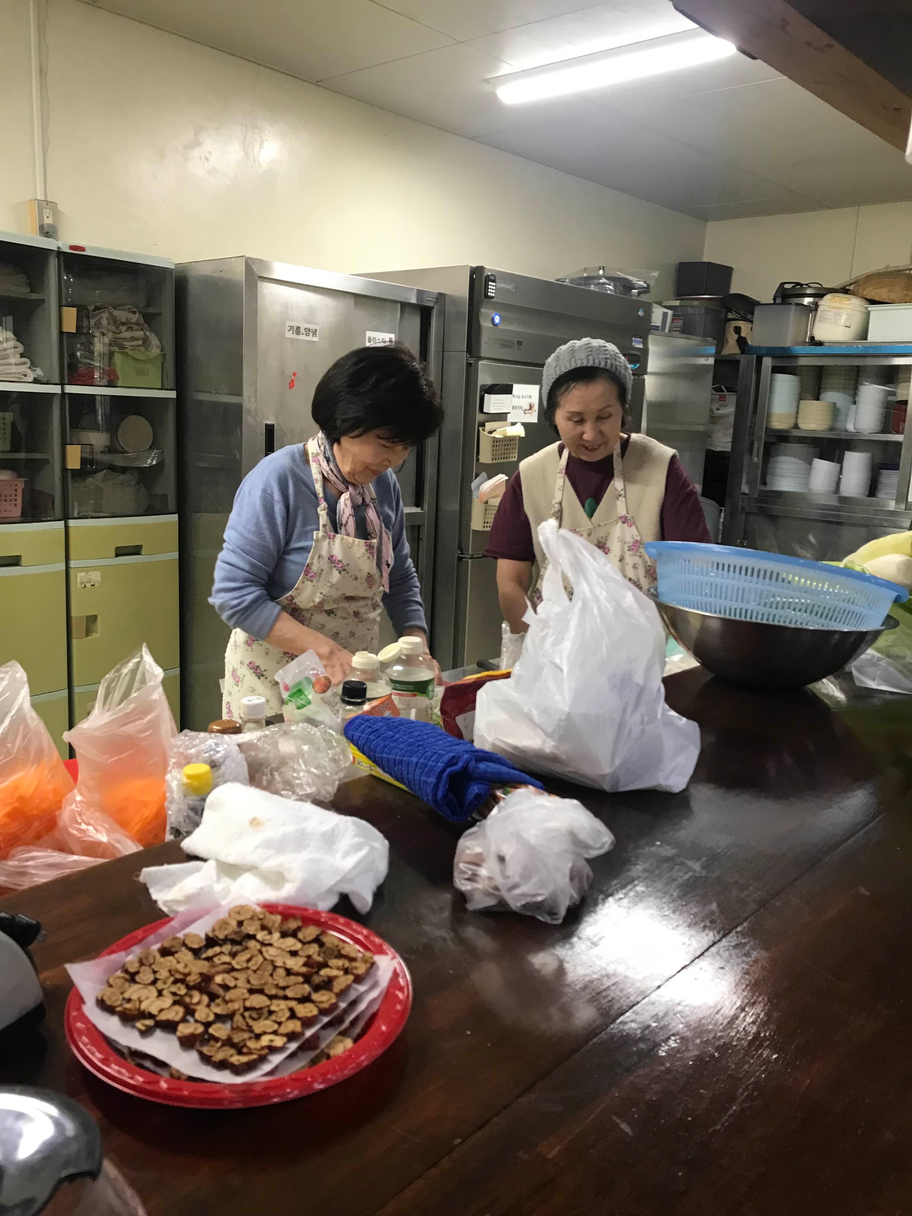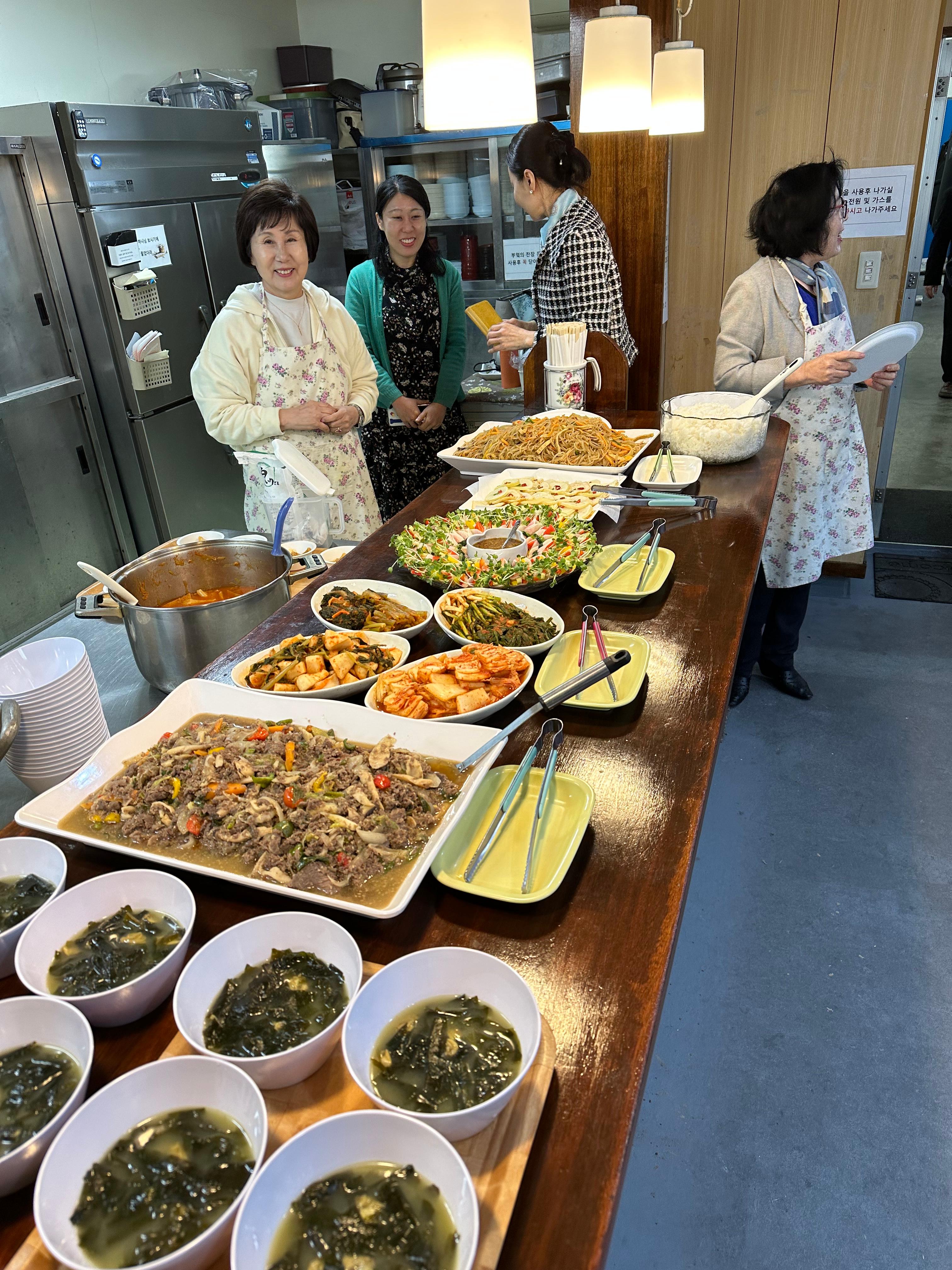 예배 후에 배식을 기다리는 모습