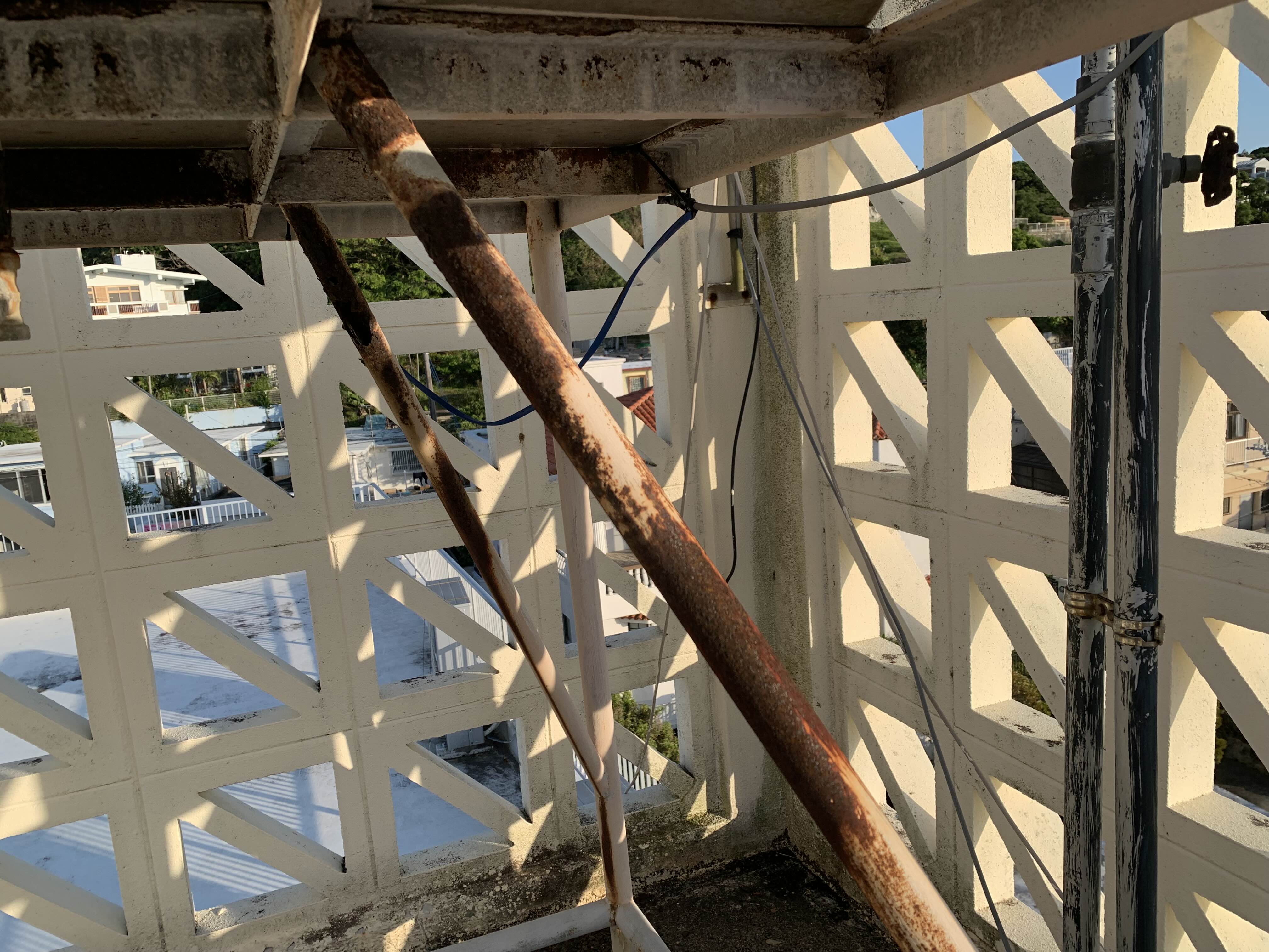 쇠 물탱크라 페인트가 잘 먹지 않아서 여러번 칠함. 바람도 세게 불어서 날아가는 줄 알았다.