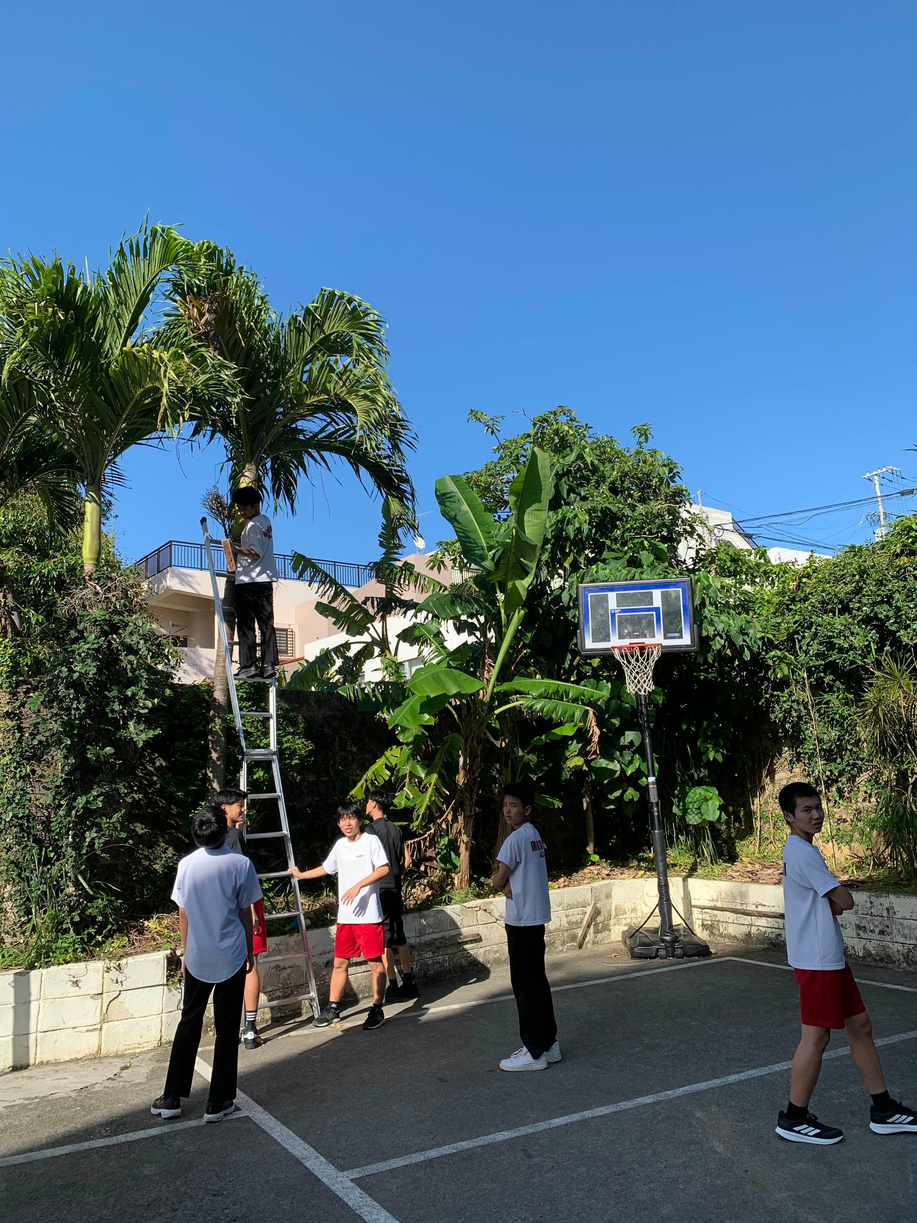 중3 아이들은 농구보다는 배구를 하러 교회에 놀러온다. 버통 8명이 와서 4명씩 게임을 하면서 논다. 갑자기 큰 소리가 니서 조용히 하라고 주의를 주었더니 배구공이 나무 꼭대기에 올라간 것이다. 그래서 사다리를 제공해주었더니 감사하다고 말을 한다.