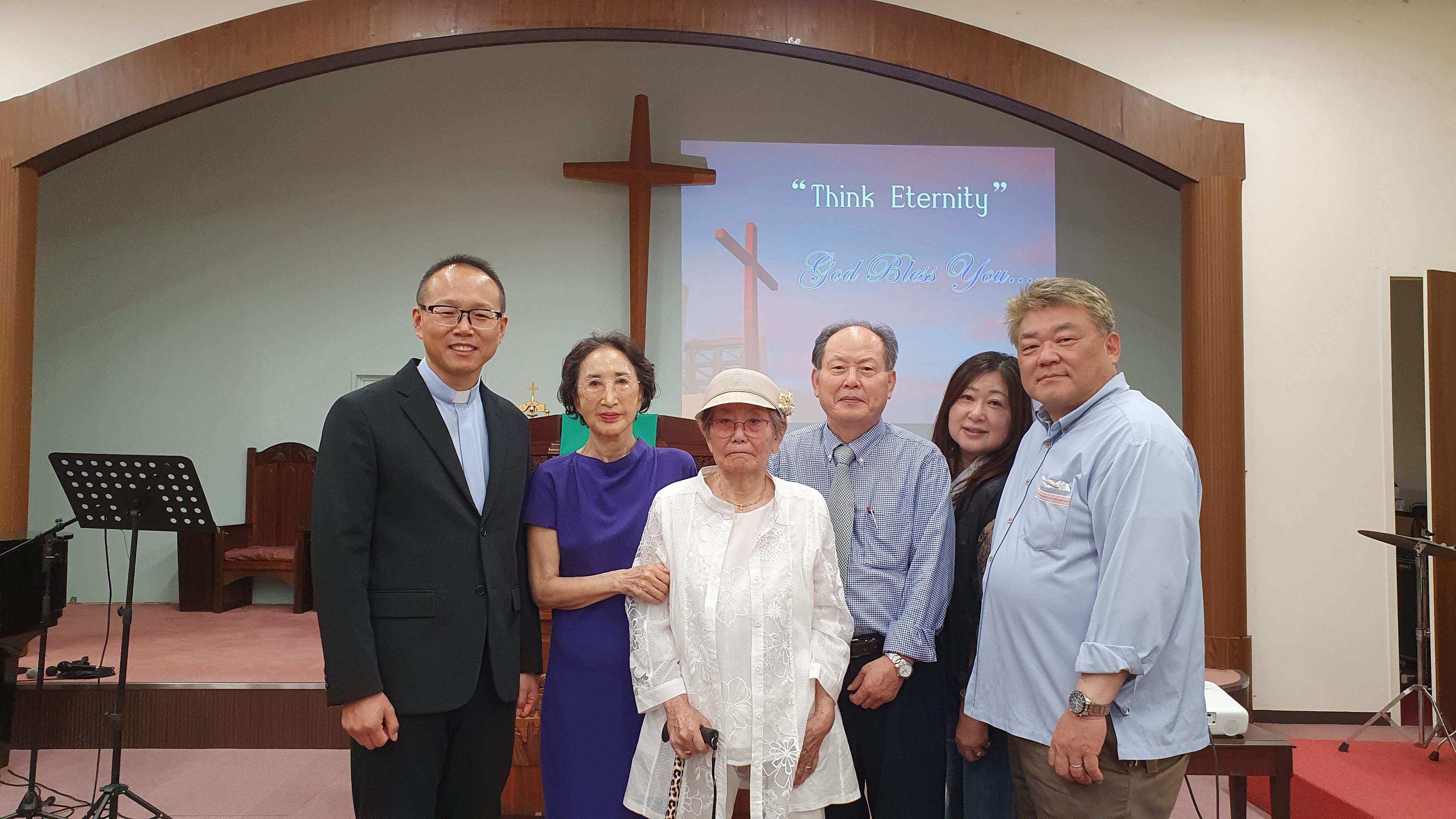 6개월만에 재활원에서 외출나와 예배 드리신 90세 김우희권사님. 예배 내내 우셨다. 사진을 찍으시면서도 우셨다. 모든 교인들이 권사님과의 석별의 정을 나누었다.
