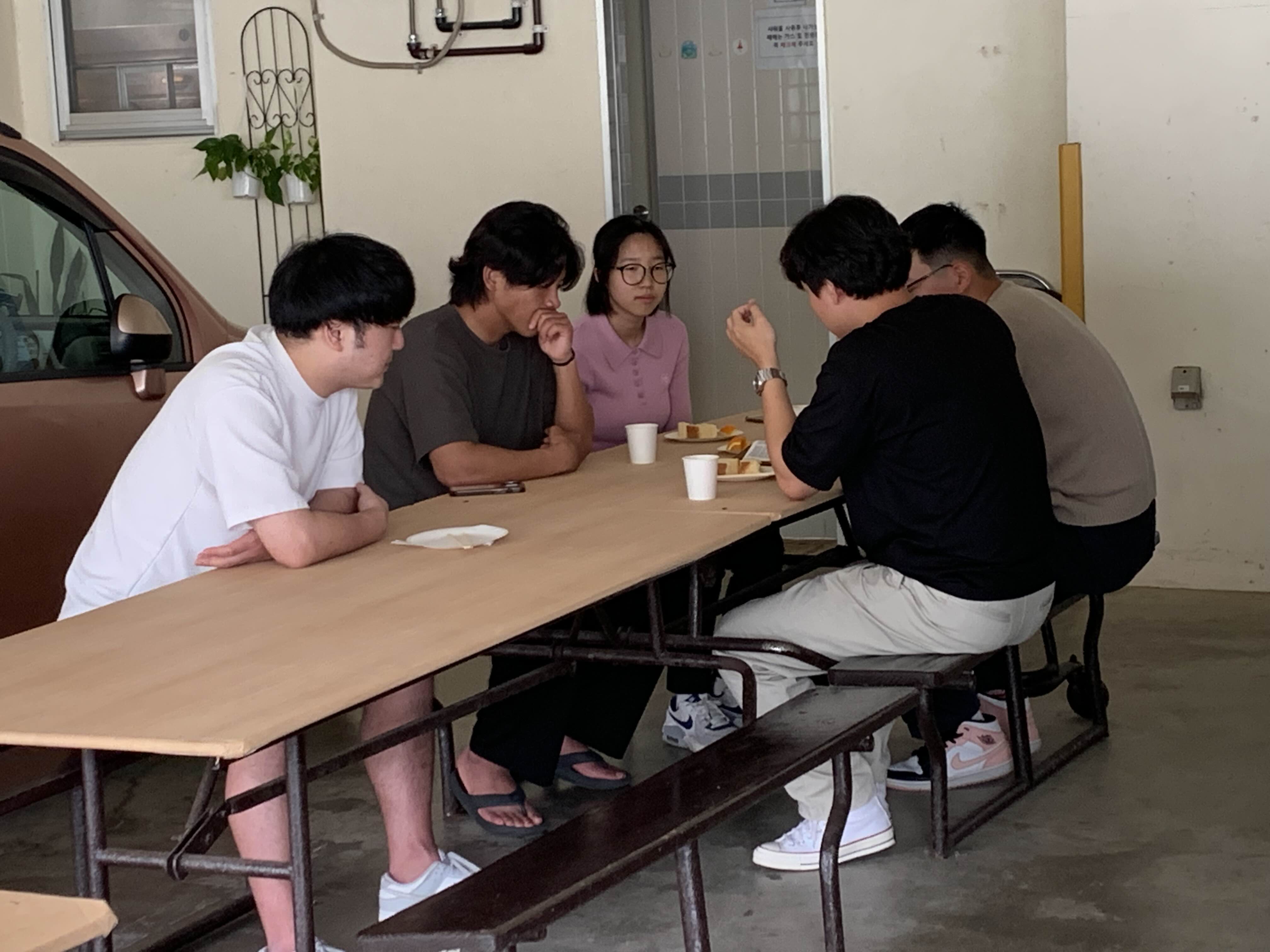 청년들은 주일 예배 드리고 식사하고 설겆이까지 자발적으로 한 후에 모여서 나눔을 한다. 진진하게.