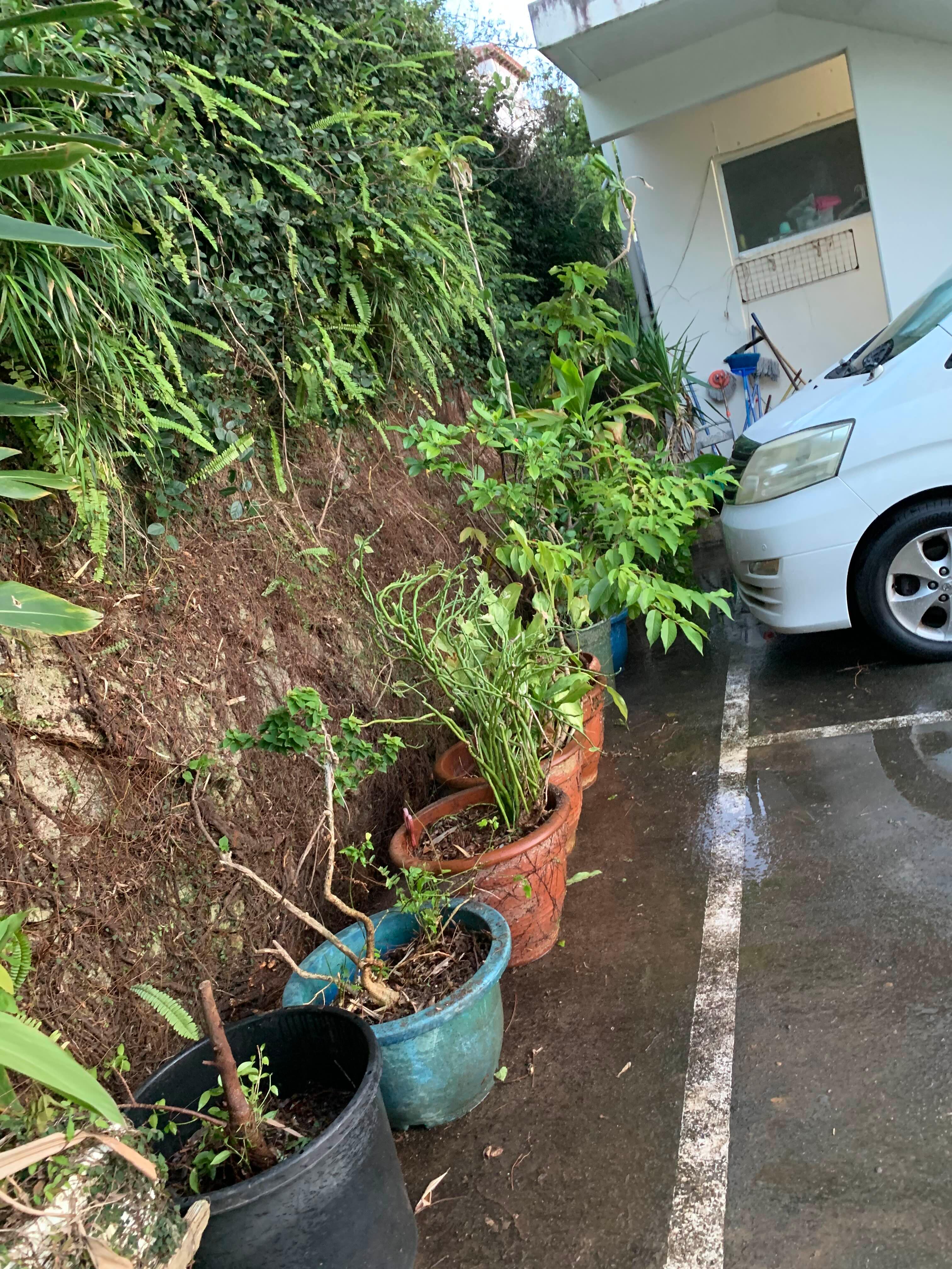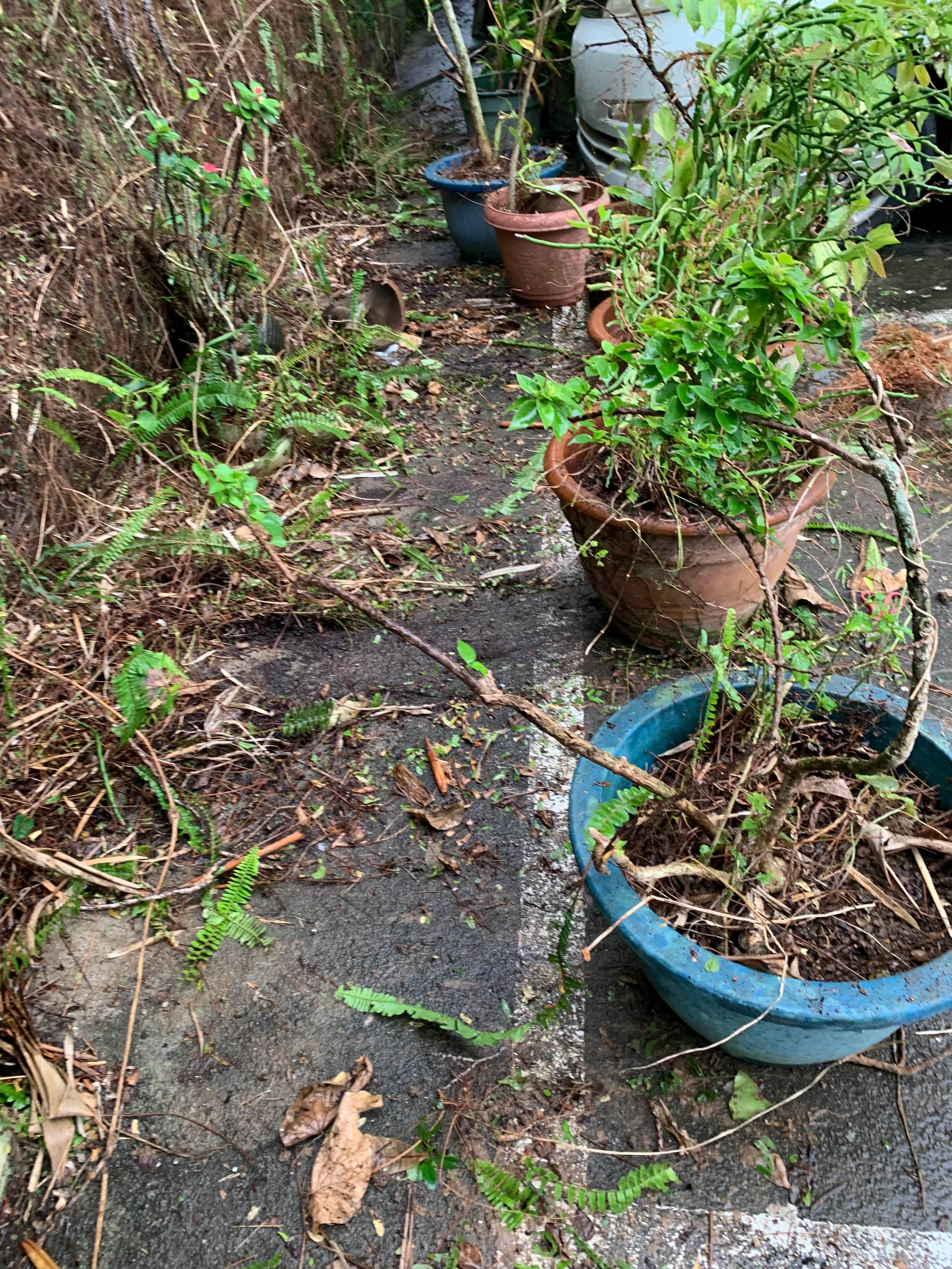 뽑은 풀들을 화단에서 버린 모습.