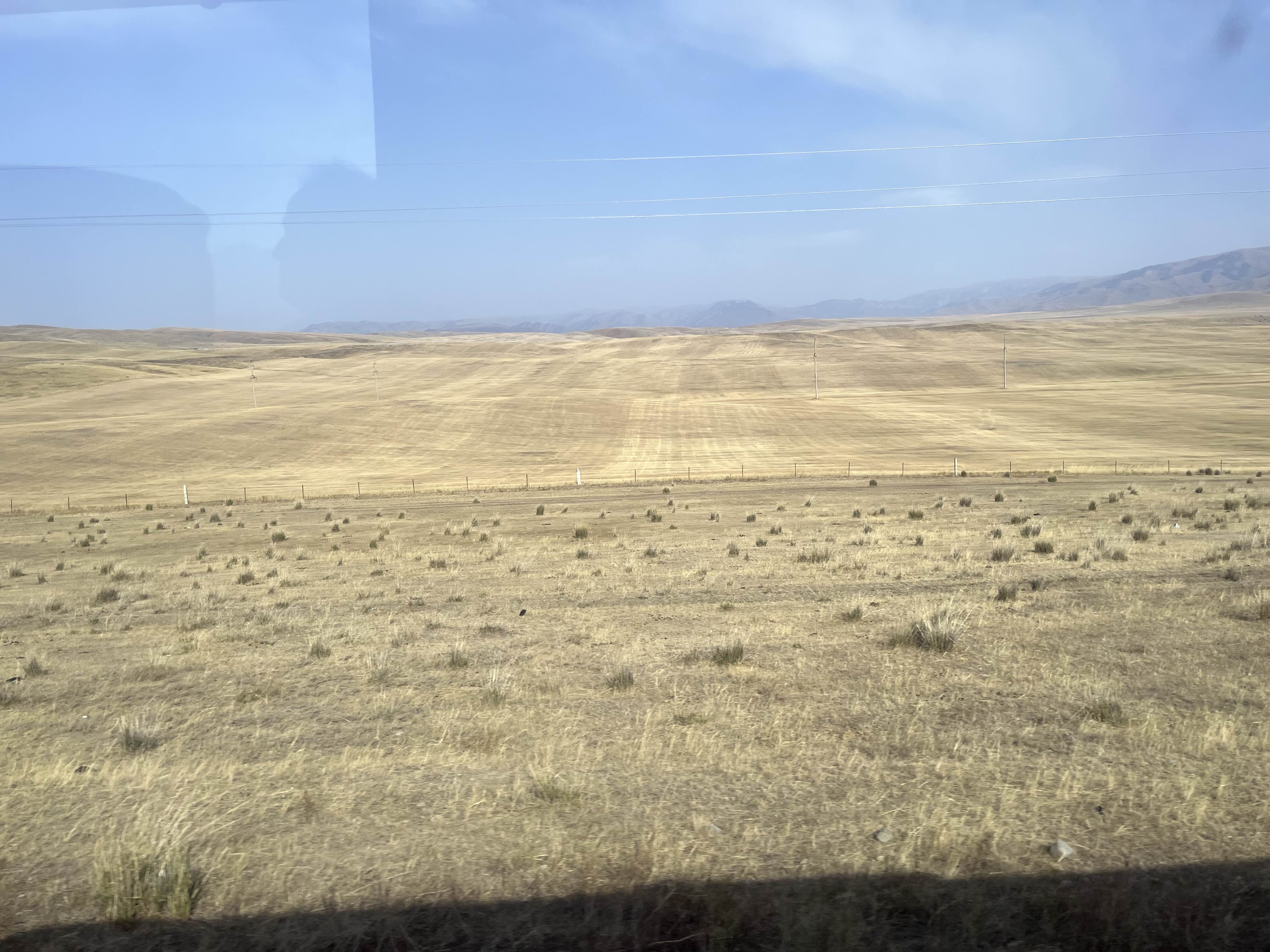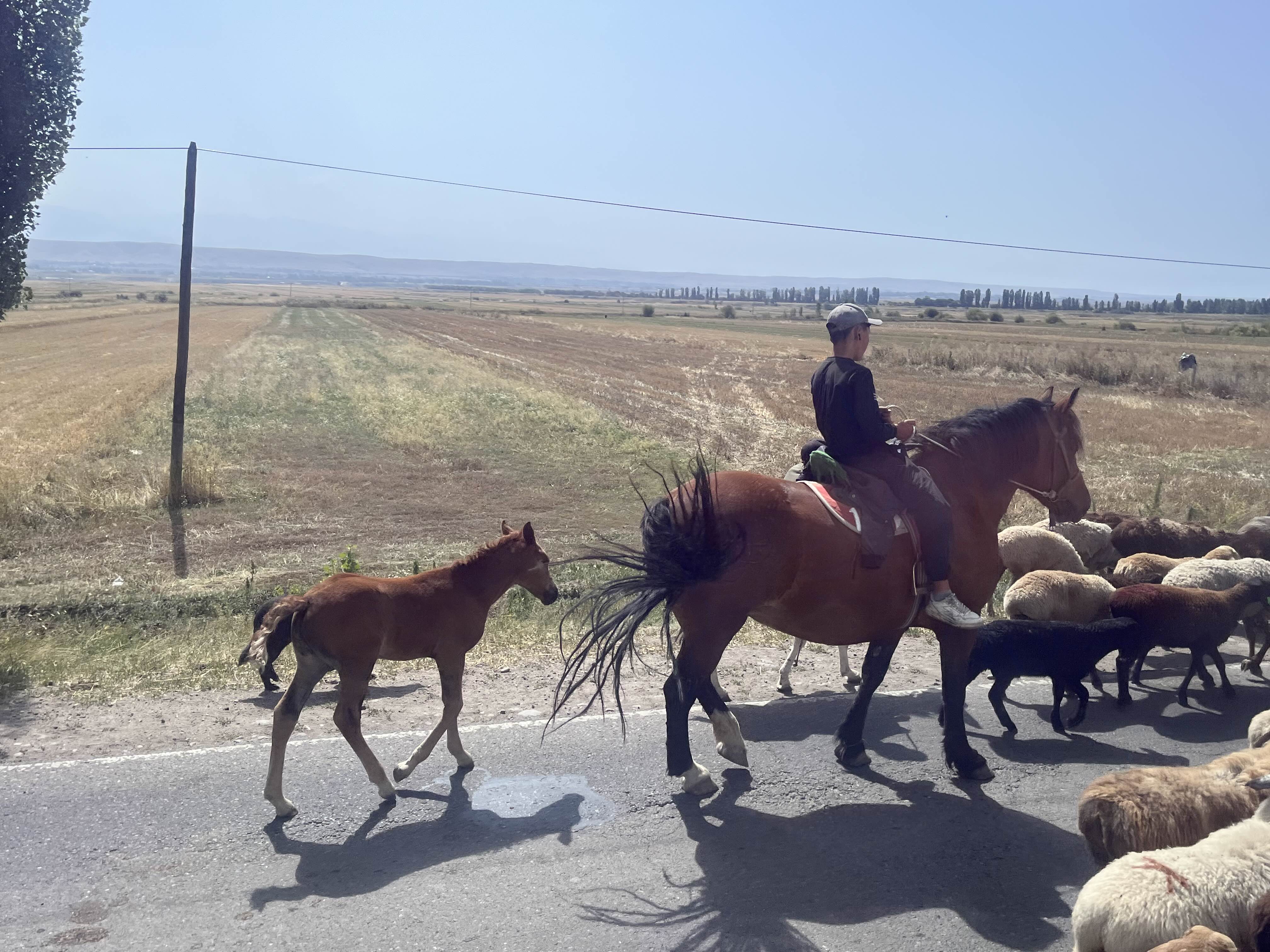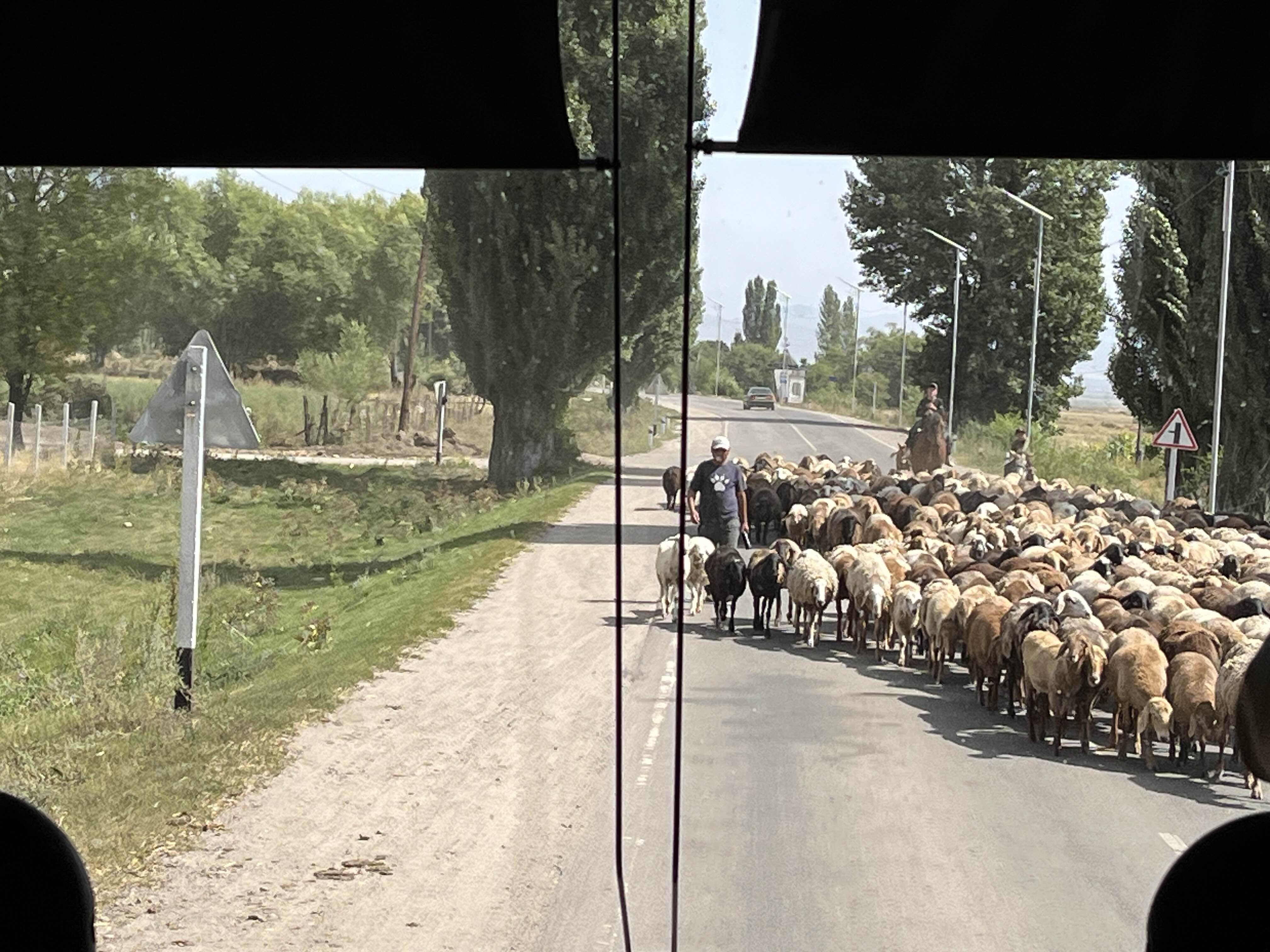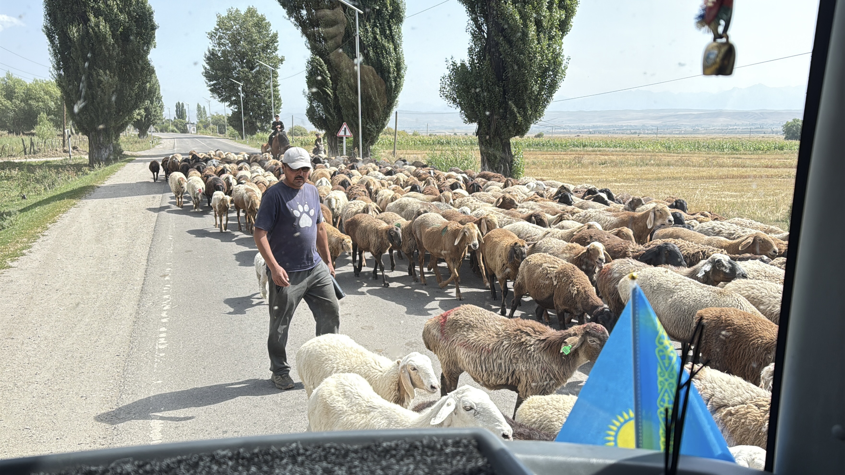 양과 말과 소떼들이 십여번이나 도로로 지나갔다.