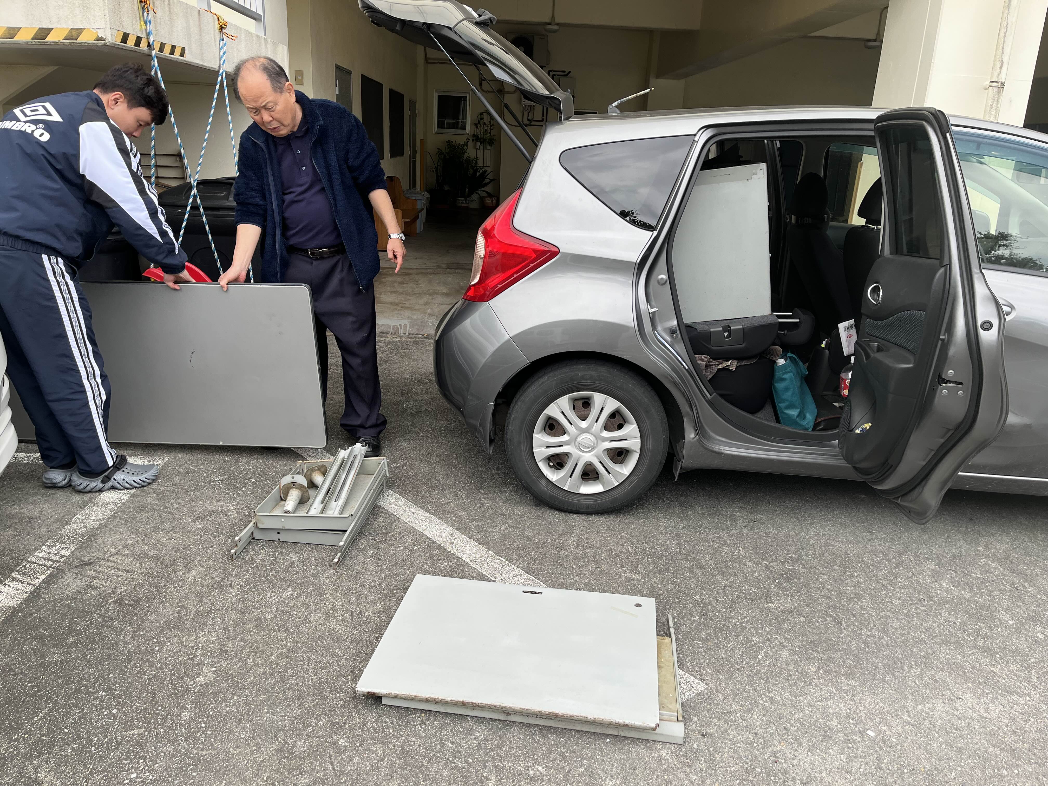 작은 차량에 해체된 철제책상이 모두 들어갔다.