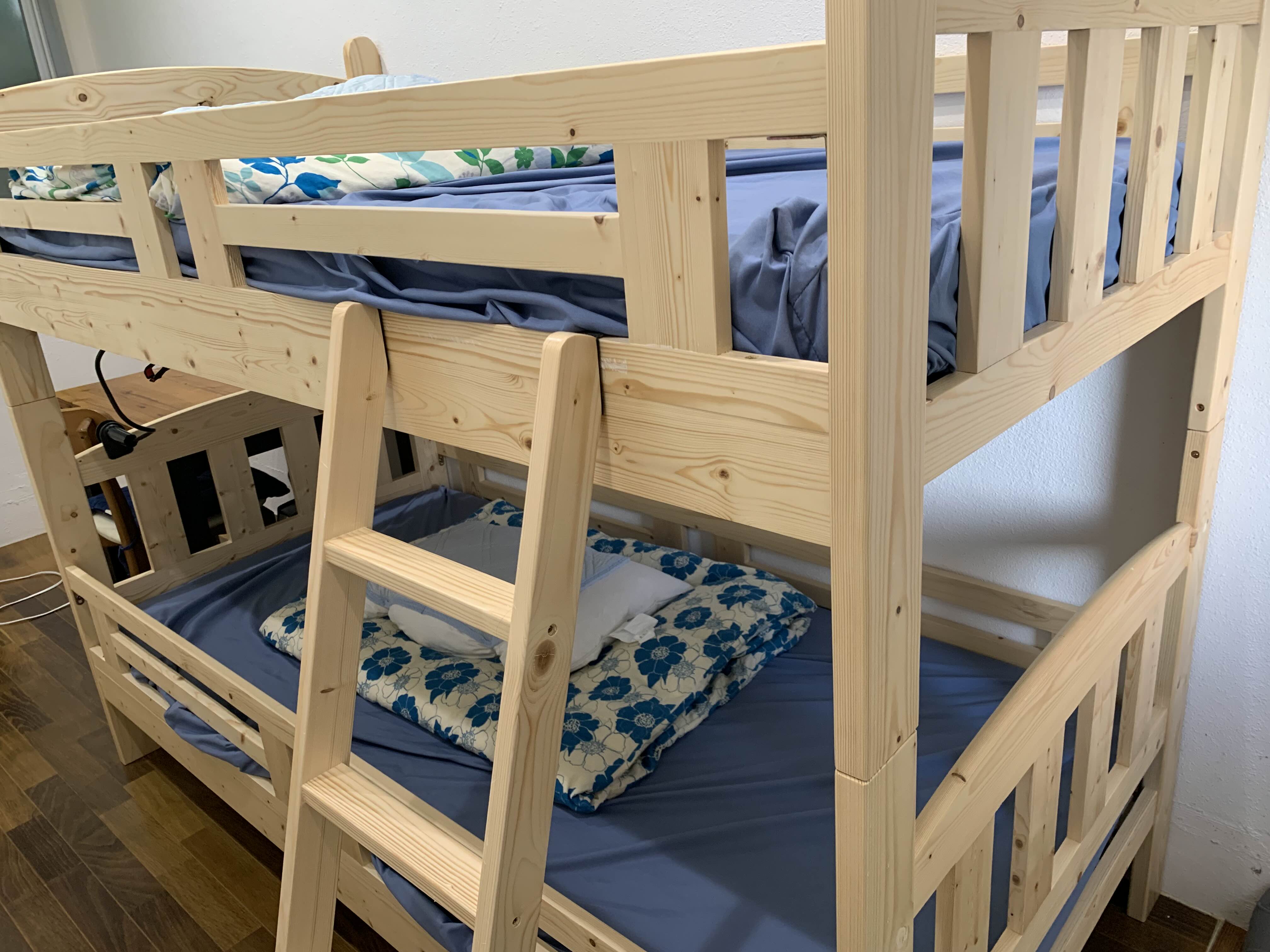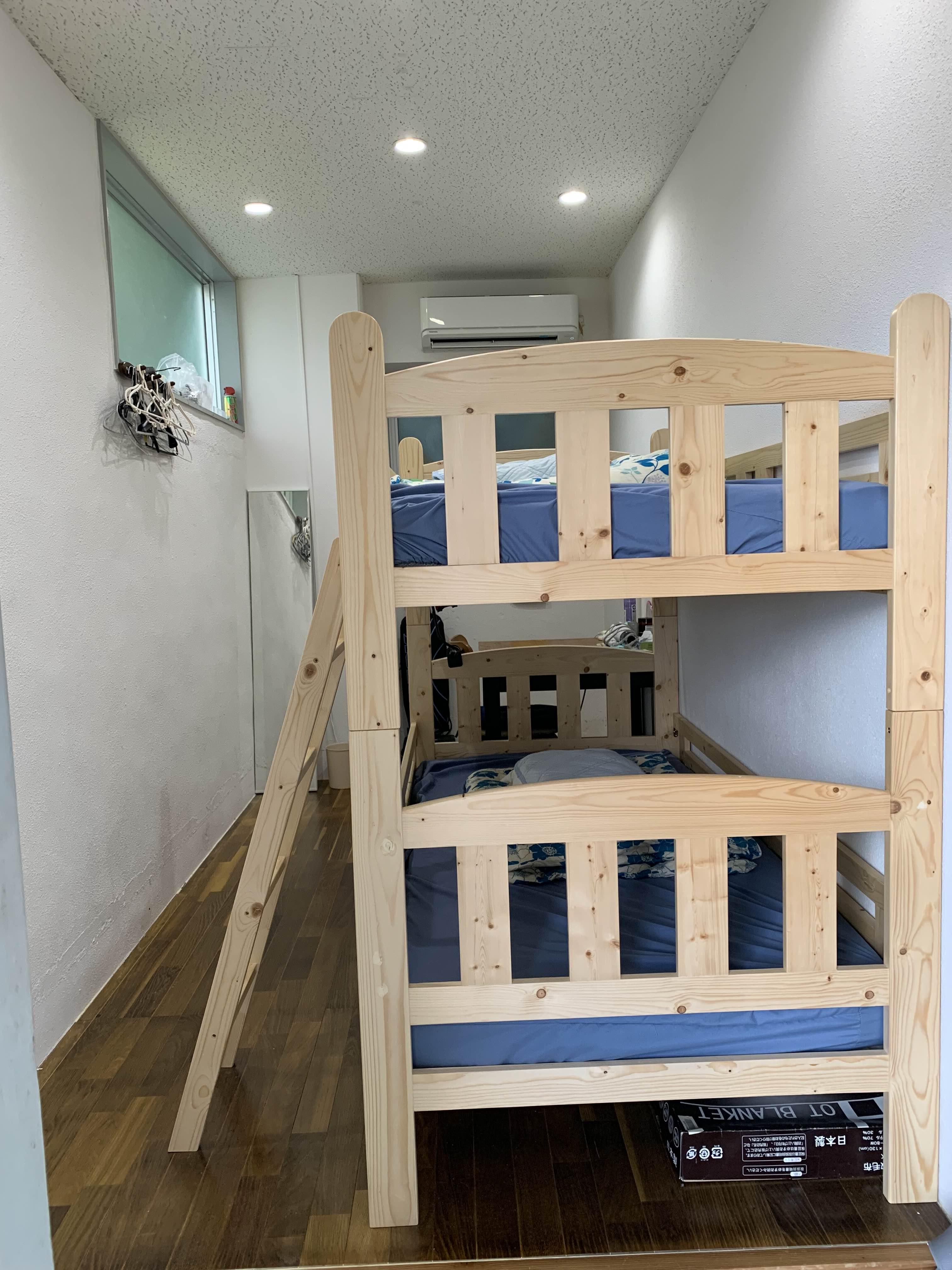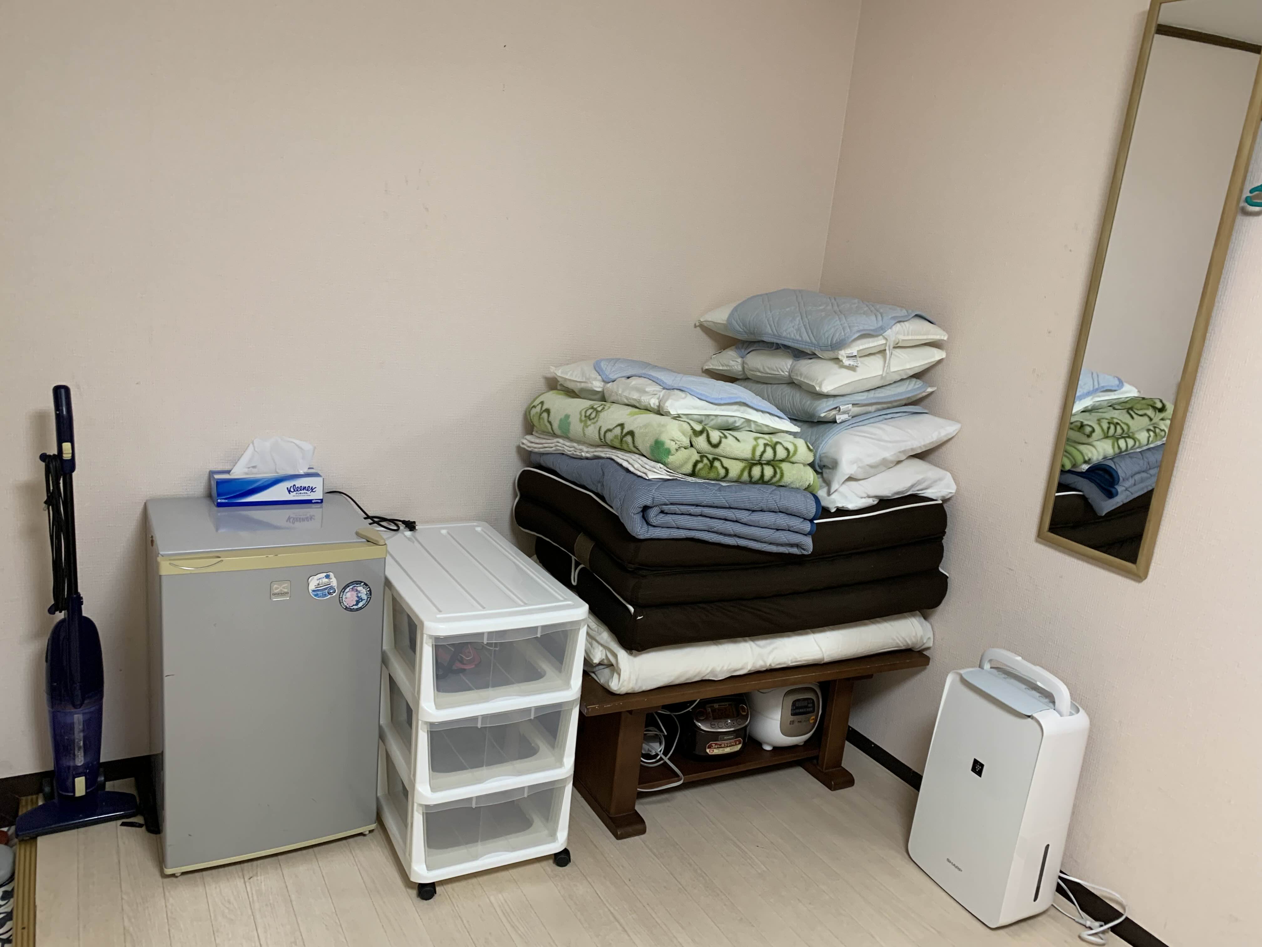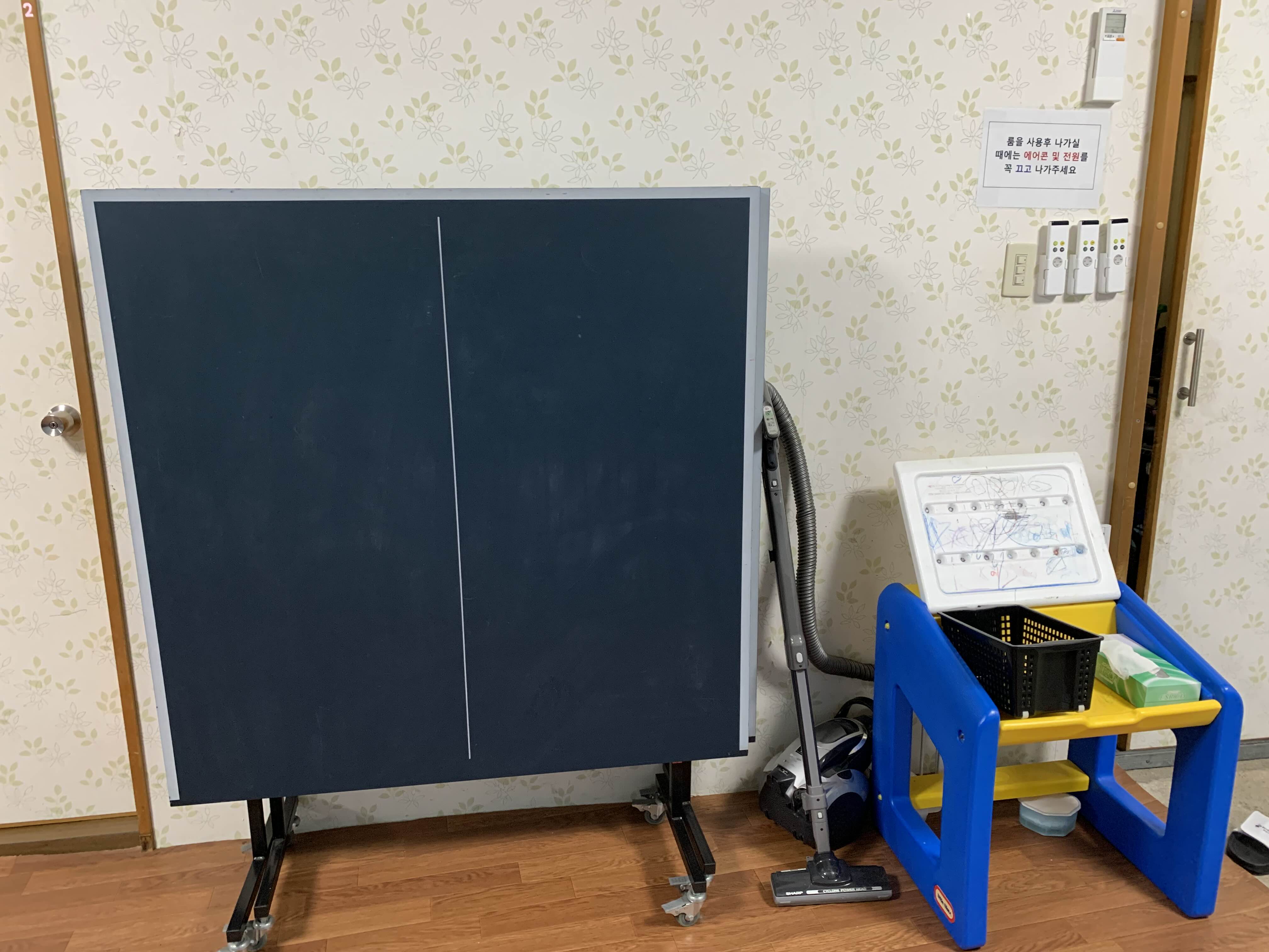 이곳은 라쿠라쿠 간이침대가 2개가 있고 대형 에어컨이 있고 바닥에 아이들과 함께 잘 수 있는 공간입니다. 실내 탁구대도 있고 냉장고도 있습니다. 어른들도 5명 정도 사용할 수 있습니다. 10명의 소그룹 사람들이 오붓하게 사용가능합니다. 또 세탁기와 건조기가 옆에 있고 시골스러운 샤워기도 세개나 됩니다.