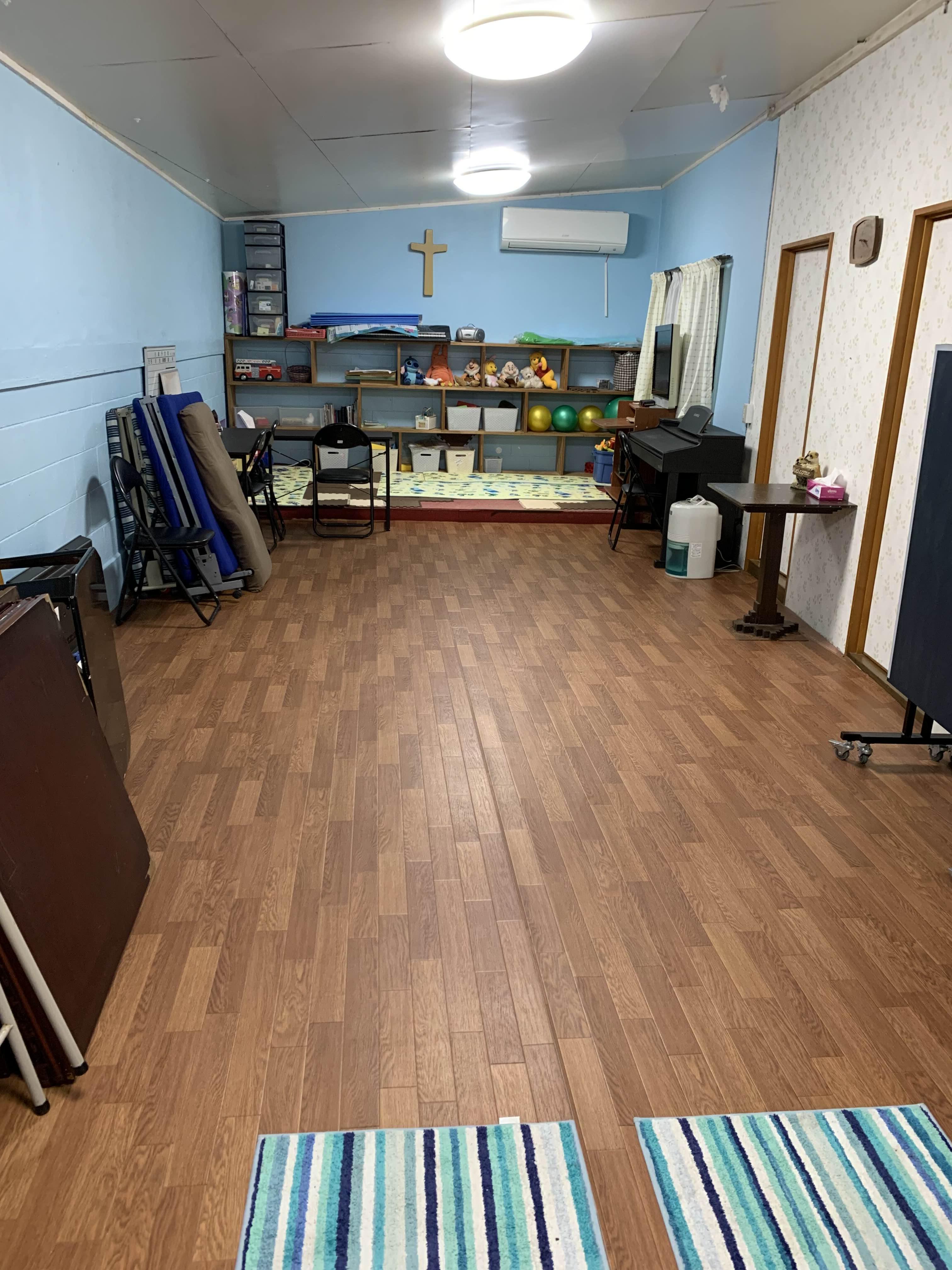더블침대와 바닥에 2-3명 잘 수도 있고 공부방이나 회의용으로도 사용가능하고 피아노가 있어서 찬양연습이나 피아노사용이 가능합니다. 작은 냉장고도 있습니다.