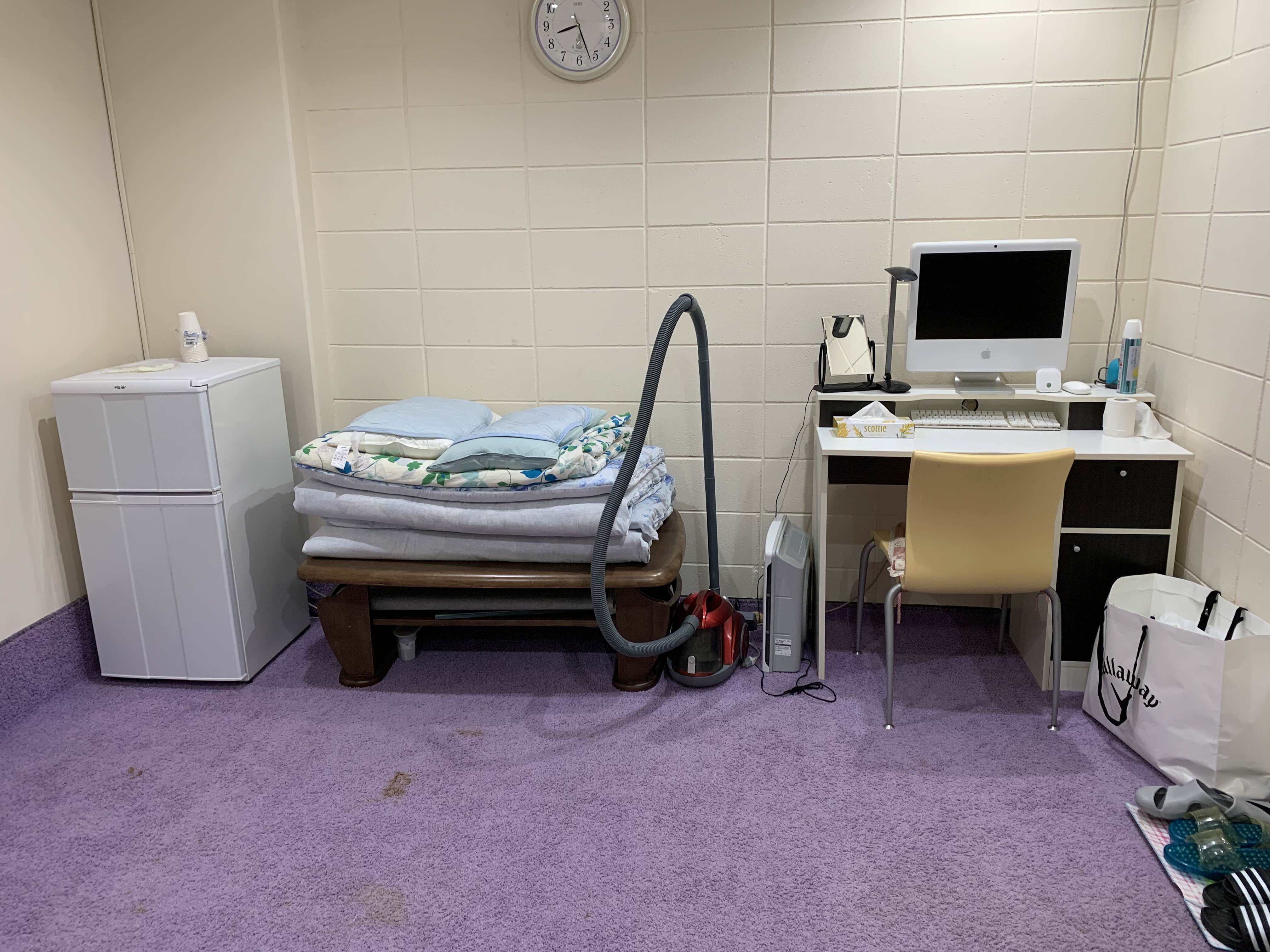 바닥에서 20명도 잘 수 있음 (남자 청년들에 한해서만 ) 바닥은 카페트형식으로 되어 있음.