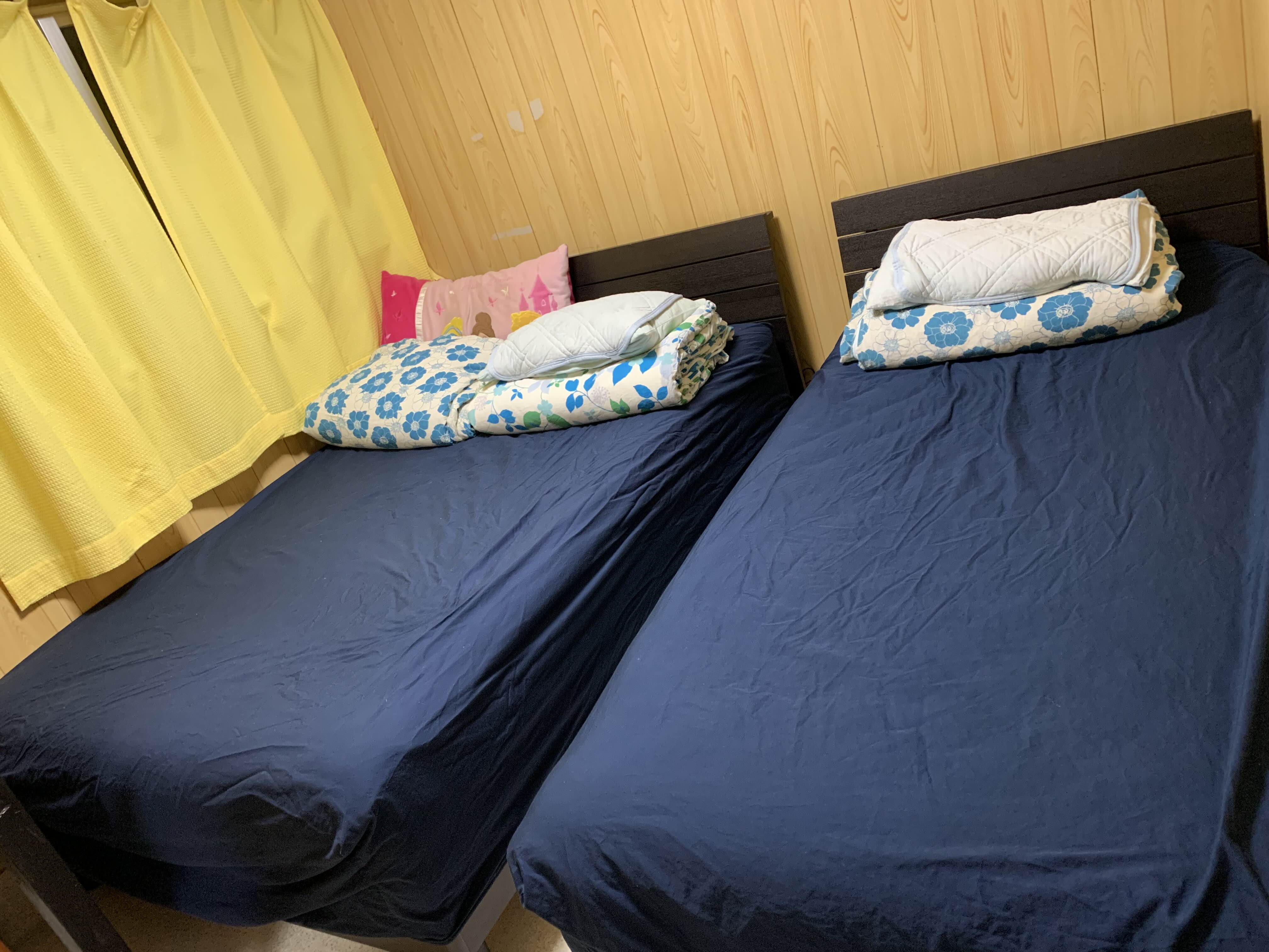 더블침대와 싱글침대가 있고 바닥에는 삼단메트리스도 사용가능합니다. 어른 4명도 가능합니다.