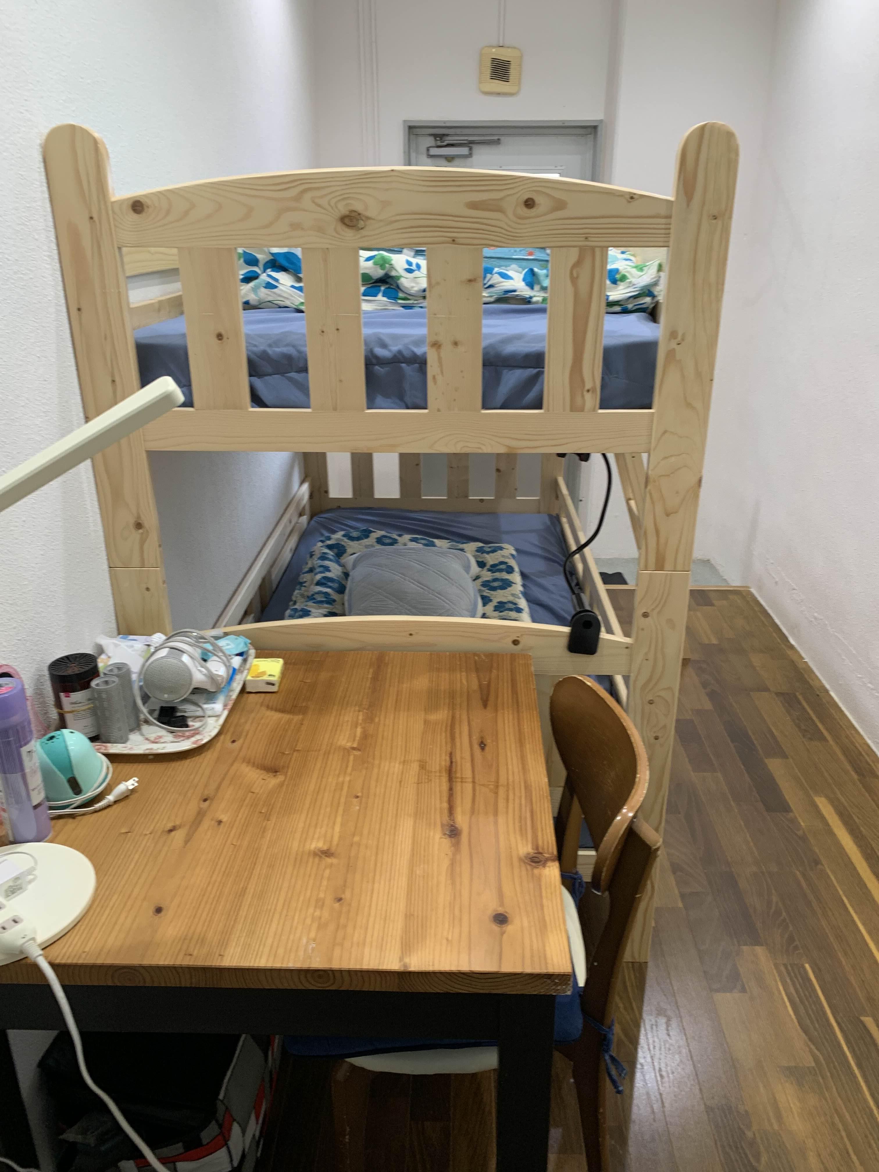 일명 철계단 방이며 성인 3명 사용 가능하고 테이블도 있어 조용히 독서하기도 좋습니다.