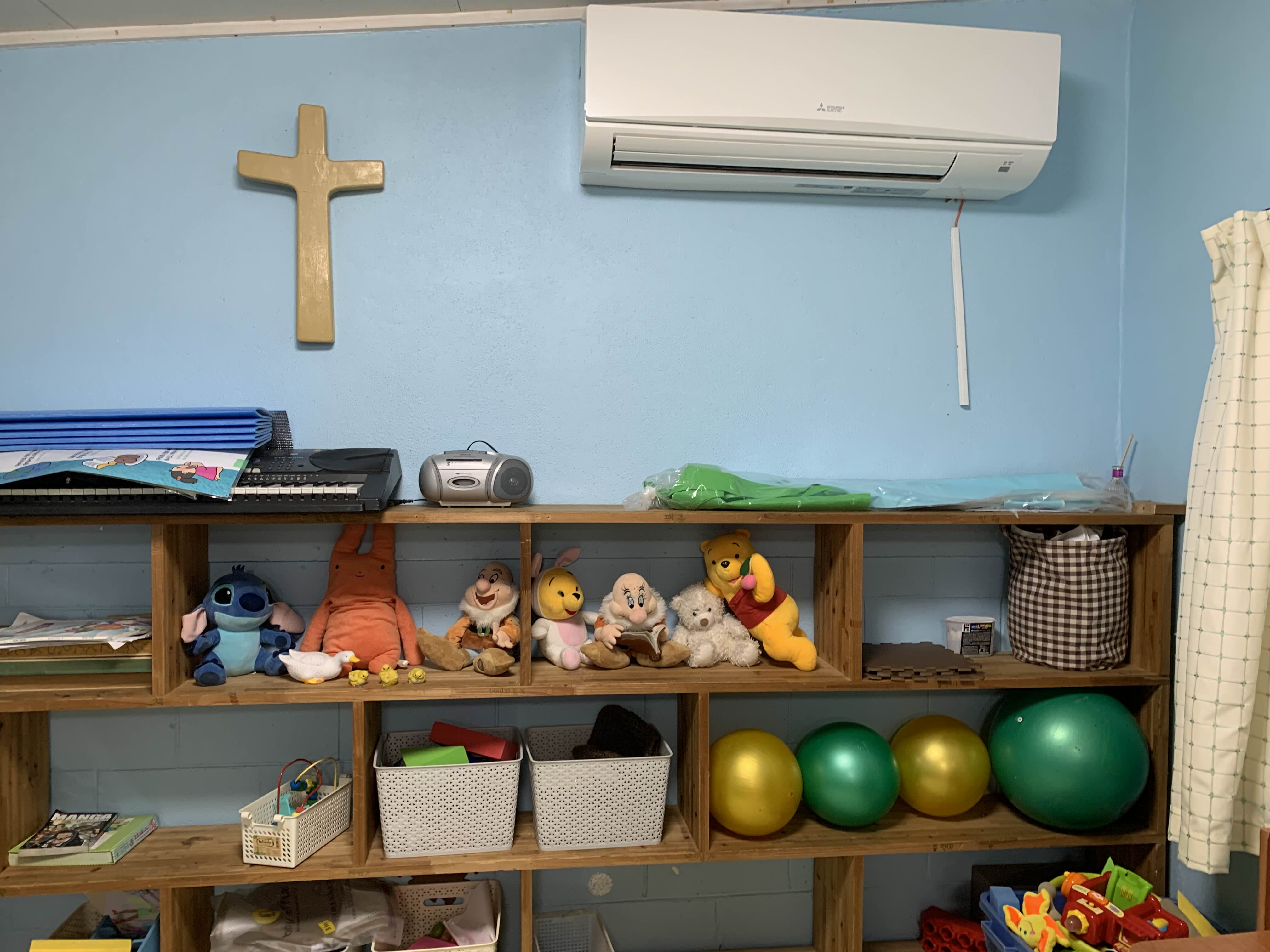 더블침대와 바닥에 아이들 2-3명 잘 수 있습니다. 방에는 작은 냉장고도 있습니다. 이방은 신혼부부도 자주 사용하고 선교사님들에게 우선순위로 빌려드립니다.