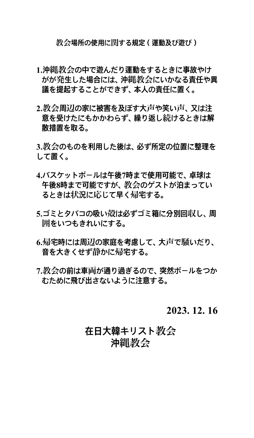 교회 장소 사용 규정 작성
