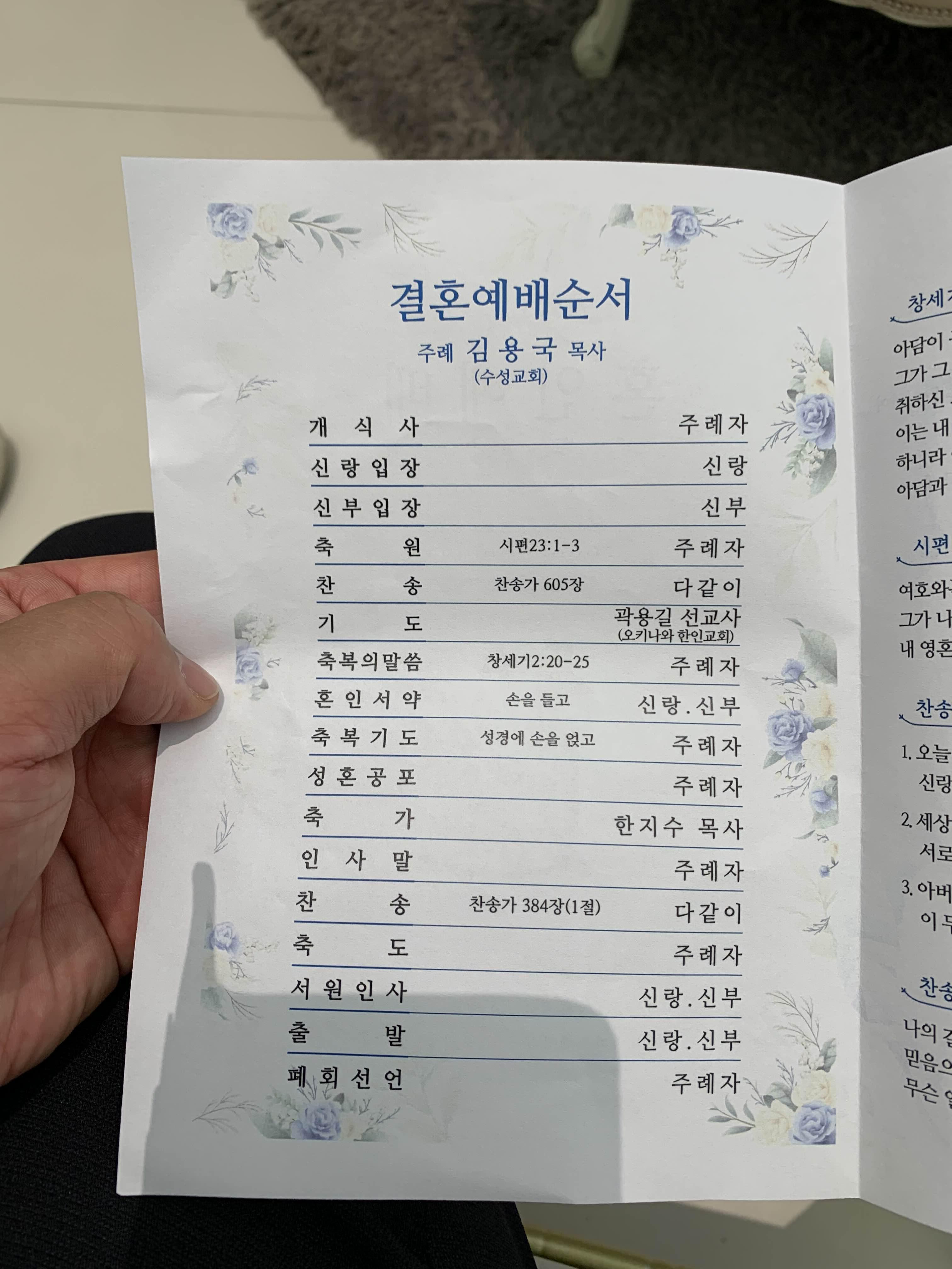 오키나와교회 청년부에서 만나 결혼하는 최병길 구혜빈. 최병길 형제는 주일예배 찬양팀 리더였고 구혜빈 자매는 반주자로 봉사했다.