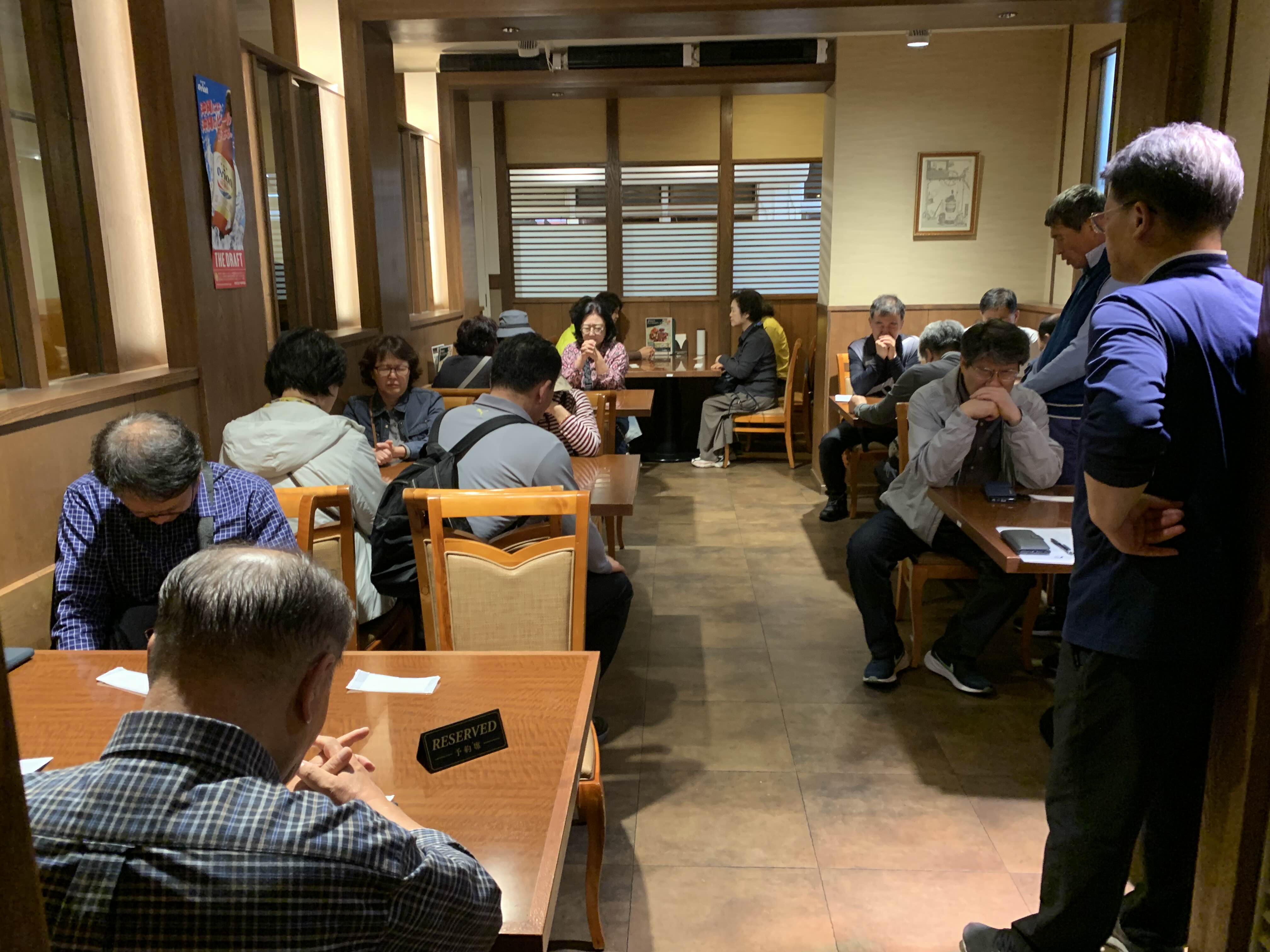 부산남노회 임원들이 저녁에 교회를 방문하고 근처 지미식당에서 식사를 하고 가셨다.