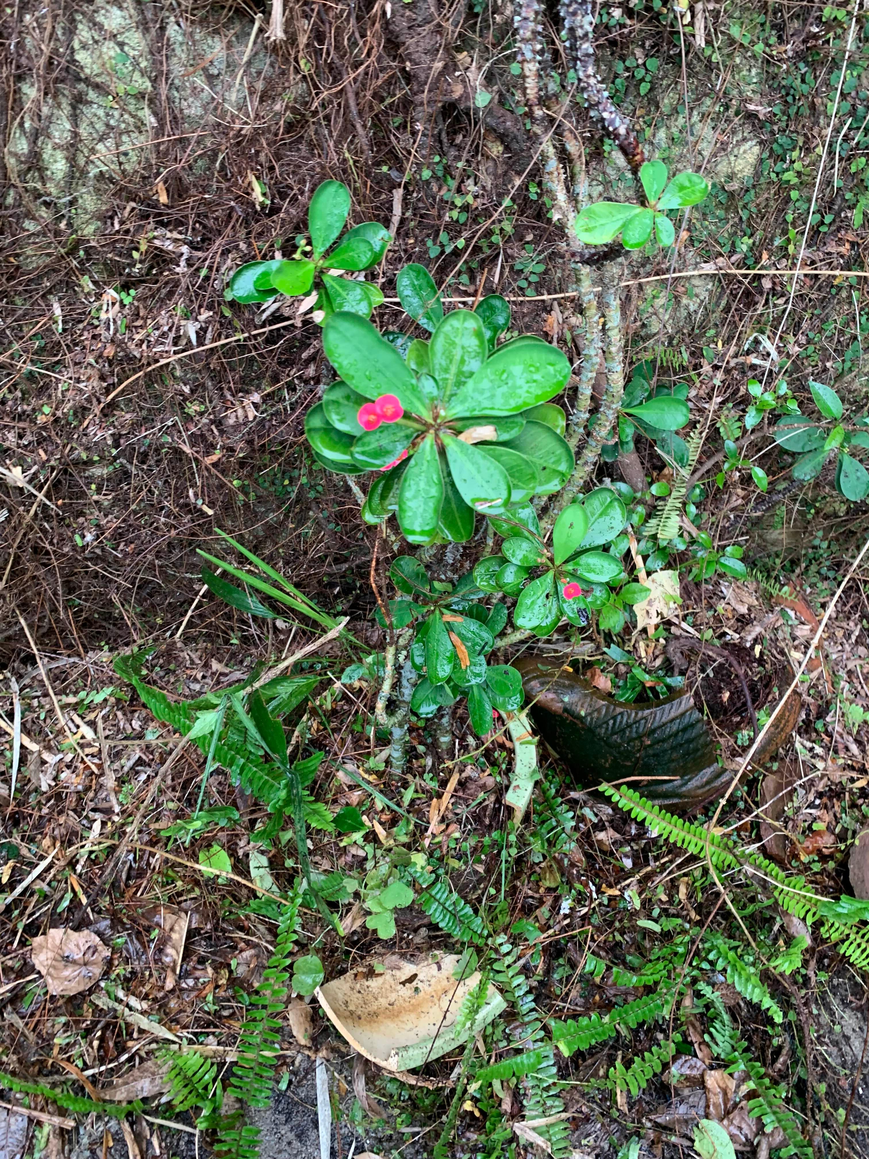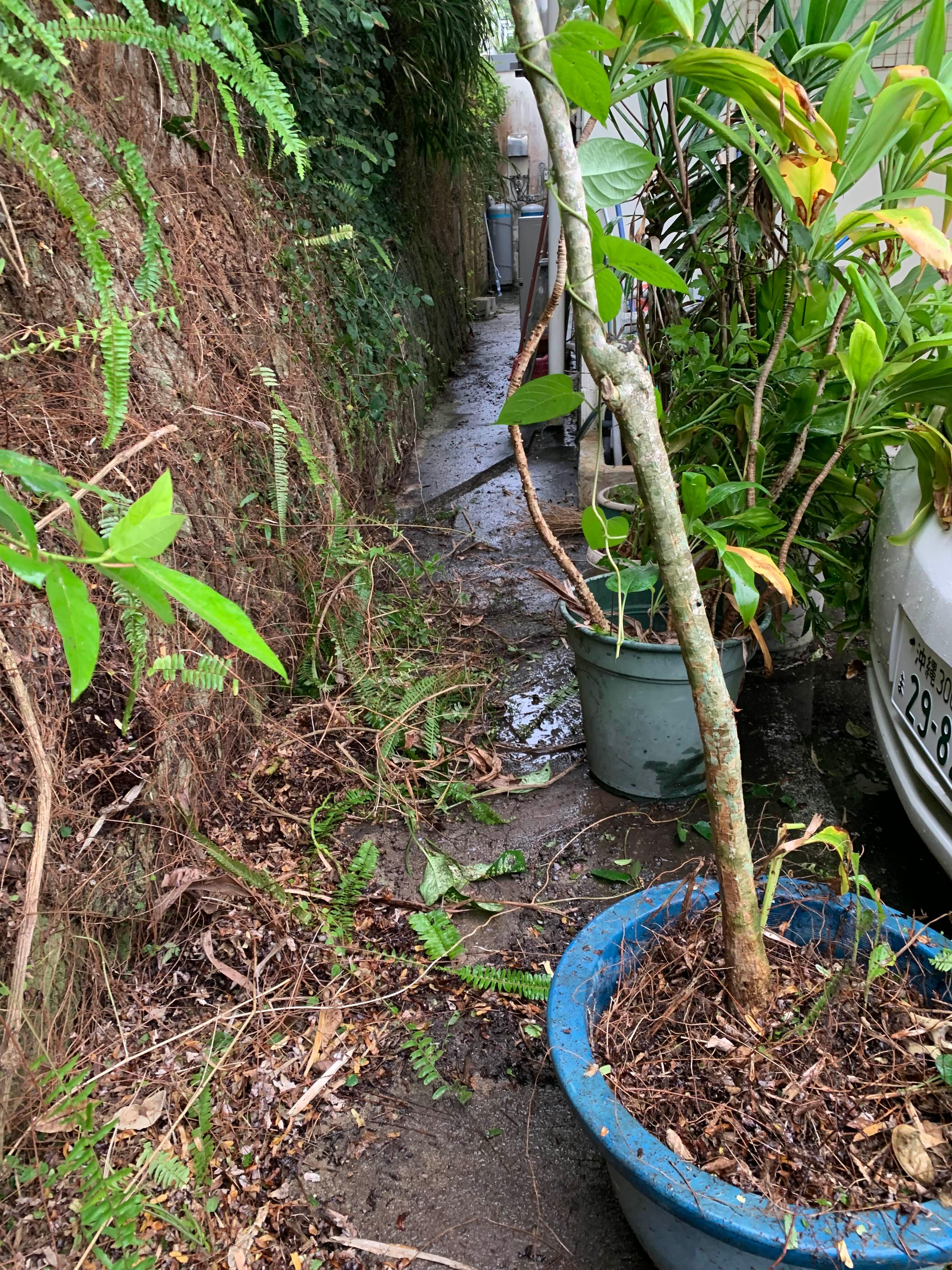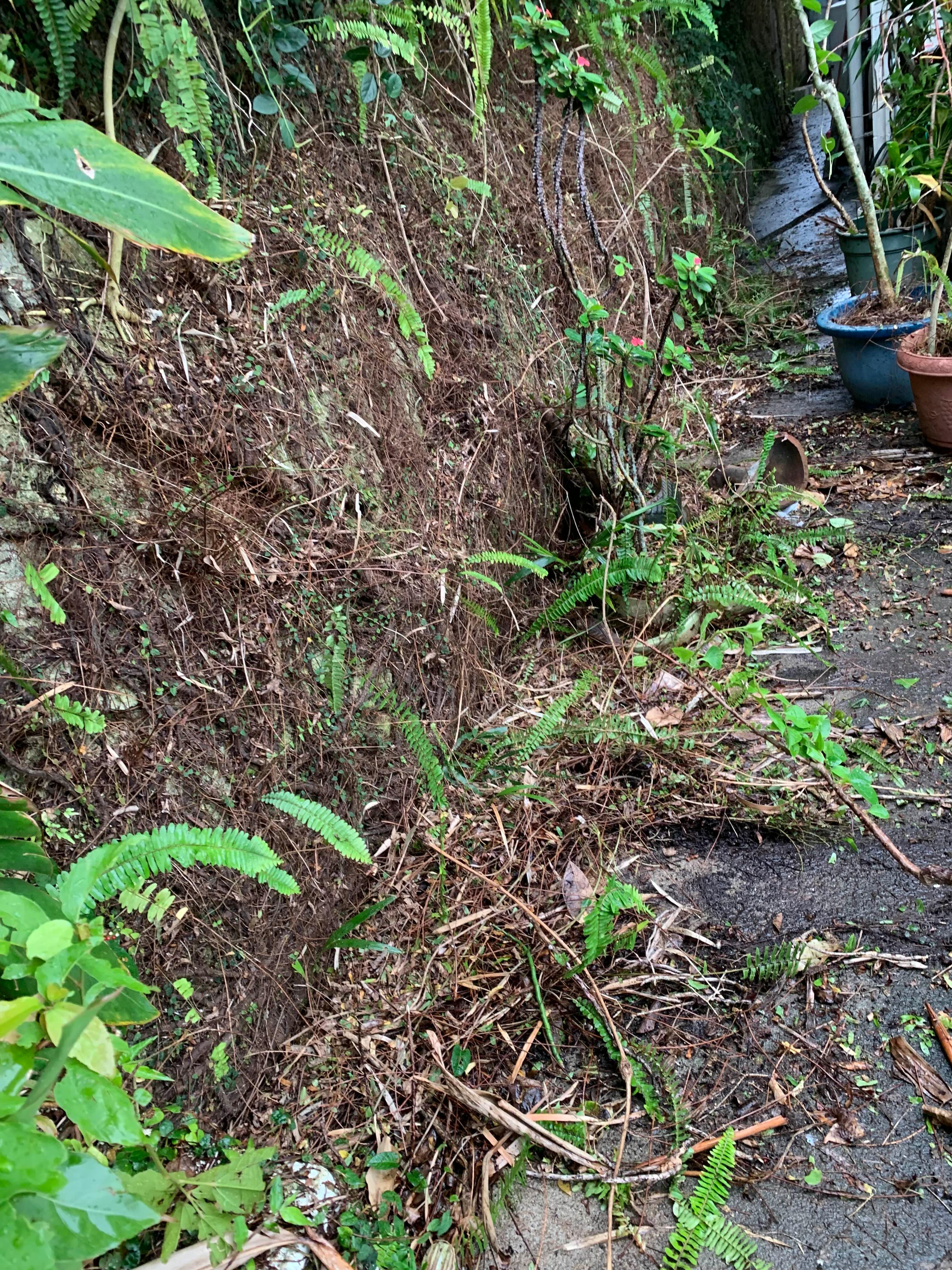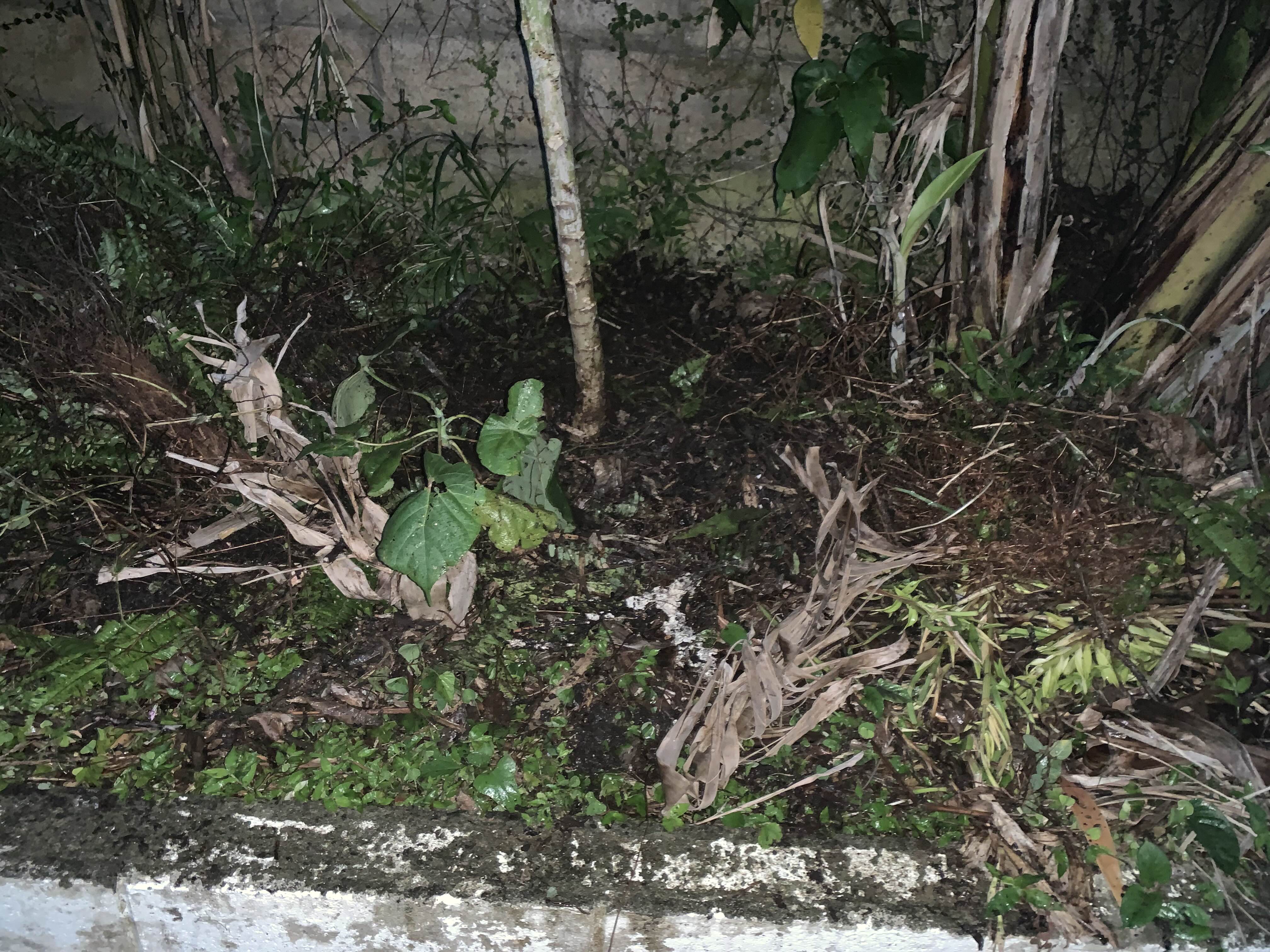 뽑은 풀들을 화단에서 버린 모습.