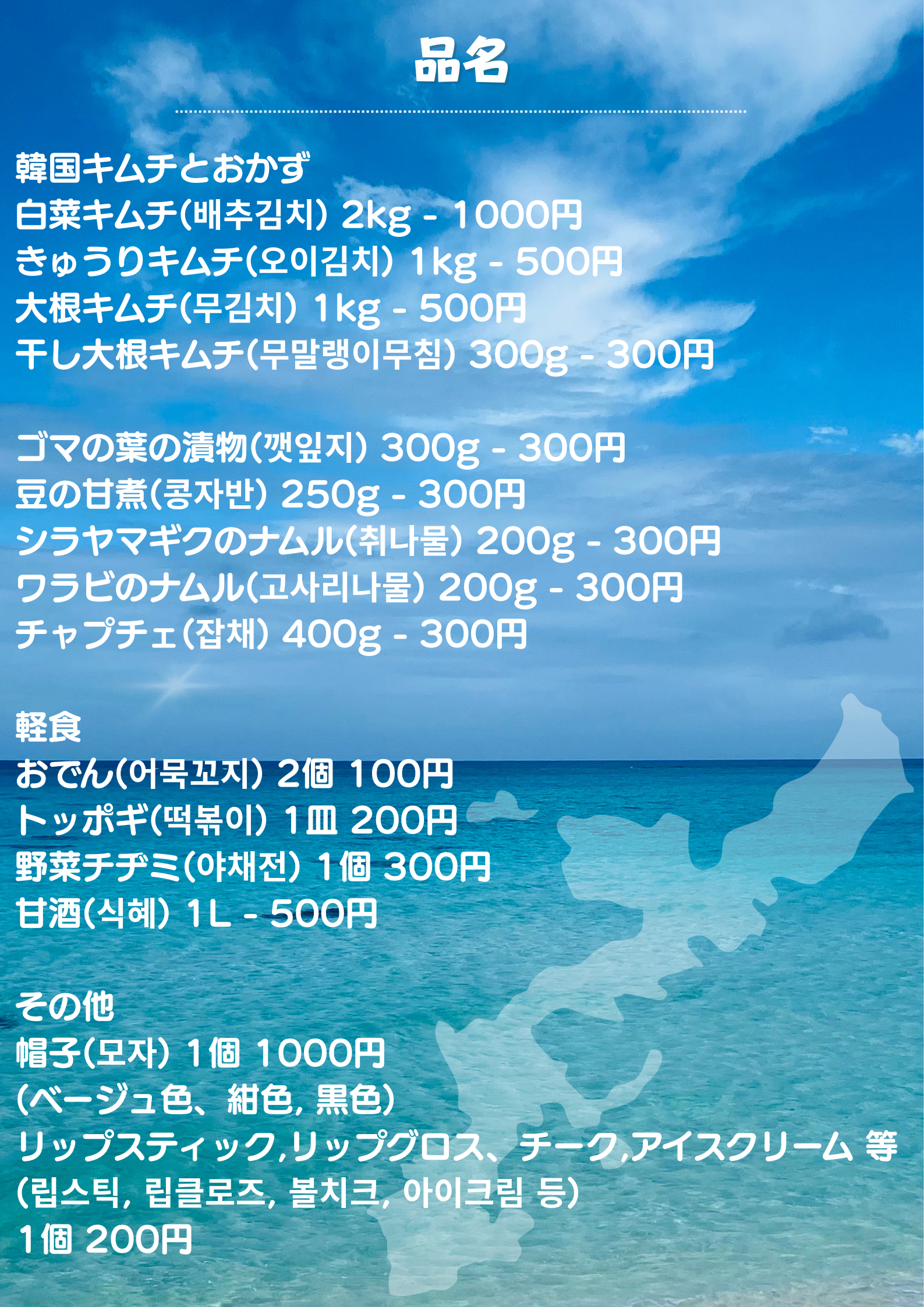 사진첩 공도교회팀과 음식바자회 준비 오키나와한인교회 2026. 1. 17. 14:27 가격이 너무 저렴해서 교회 주변의 일본분들이 방문했다. 금방 동이났다. 덕분에 인사와 대화를 하게 되어 감사했다.