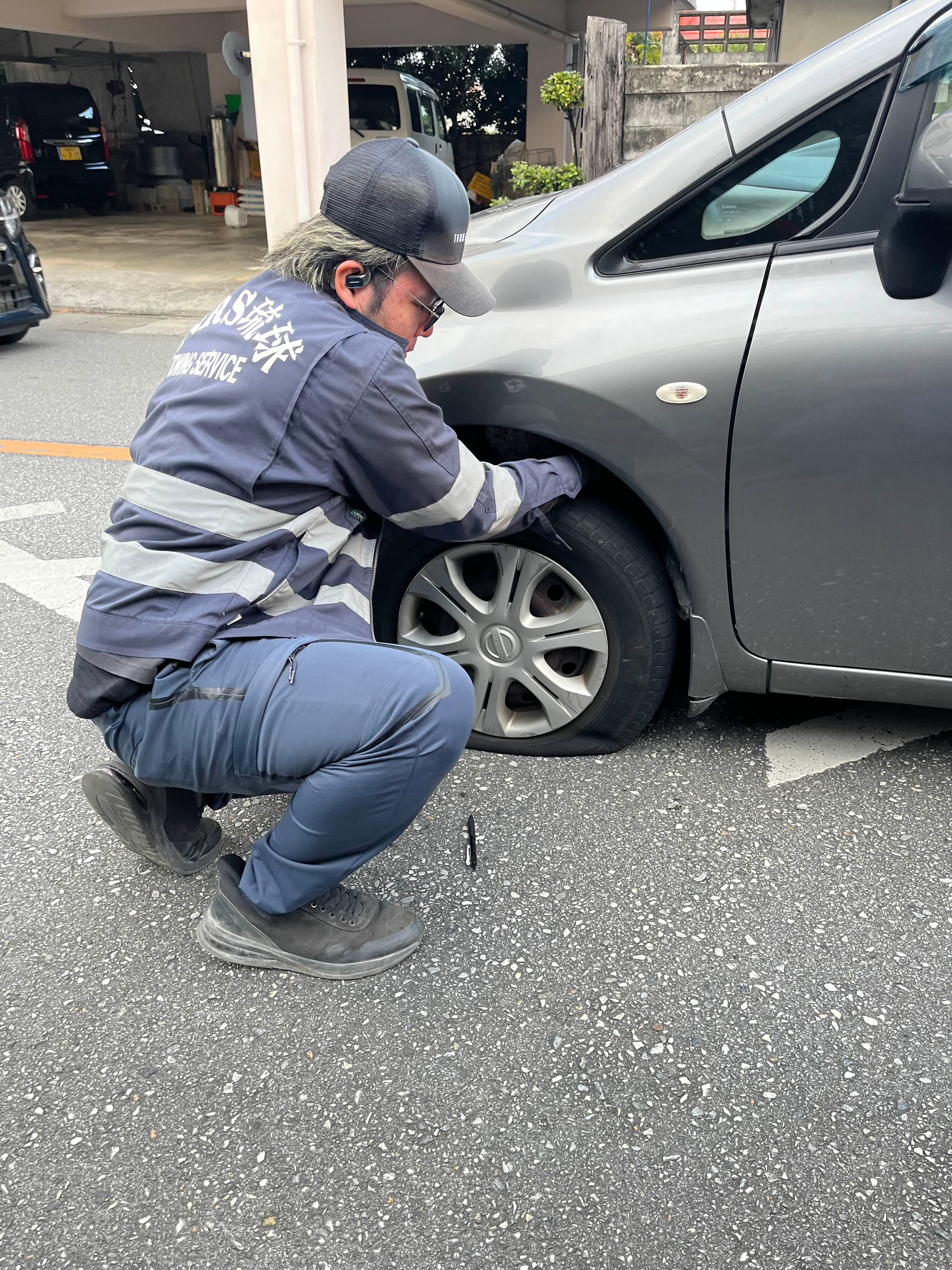 렉카 기사가 타이어 공기을 빼고 빼려고 해도 안되어서 차를 앞으로 움직이니깐 빠졌다.
